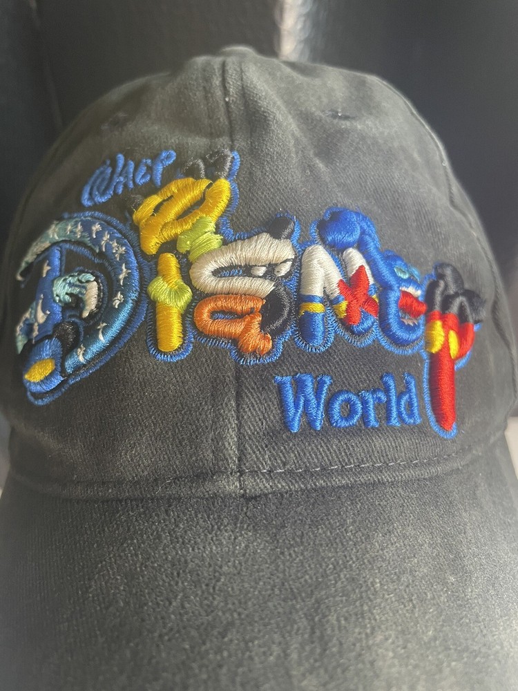 Walt Disney World Black Strpback Baseball Hat Cap Mickey Black Embroidered Adult....