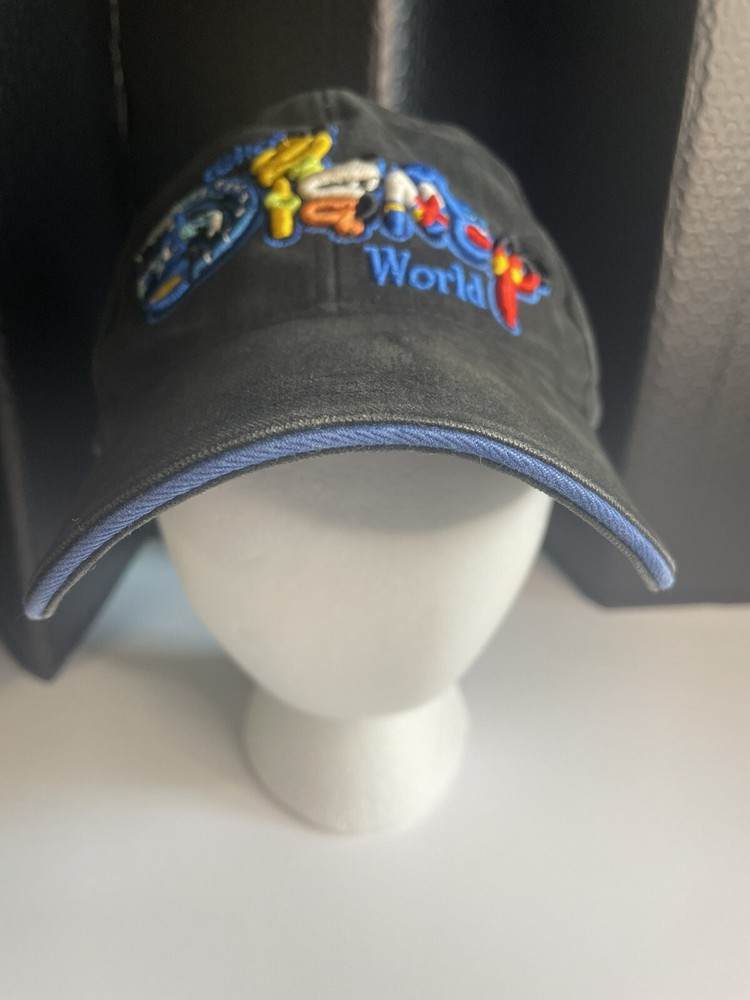 Walt Disney World Black Strpback Baseball Hat Cap Mickey Black Embroidered Adult.