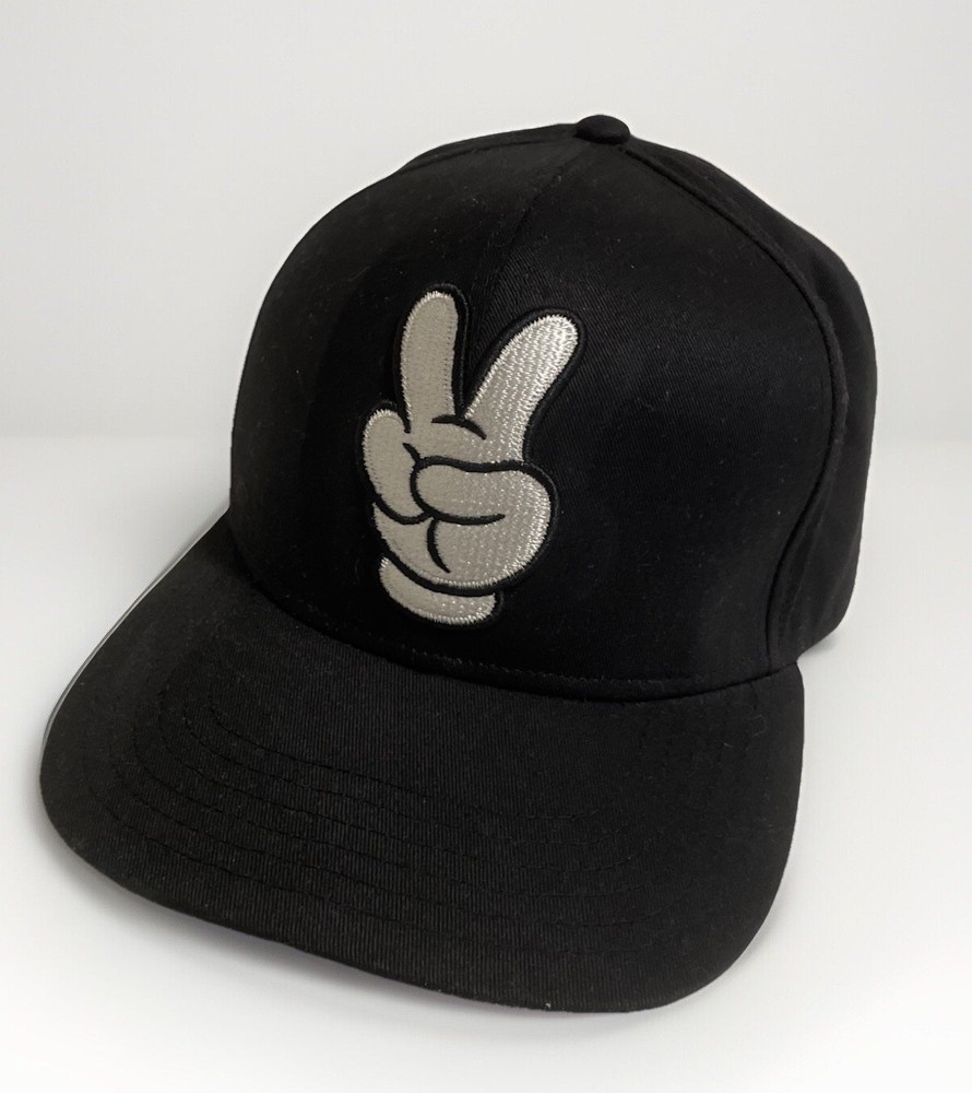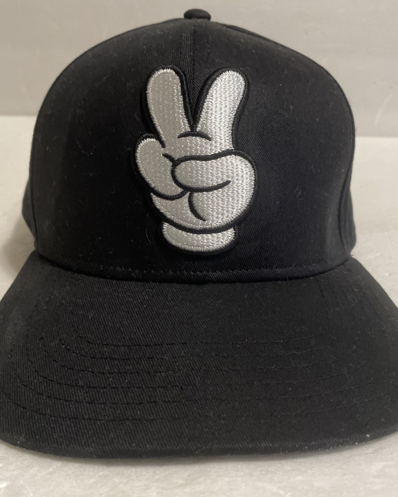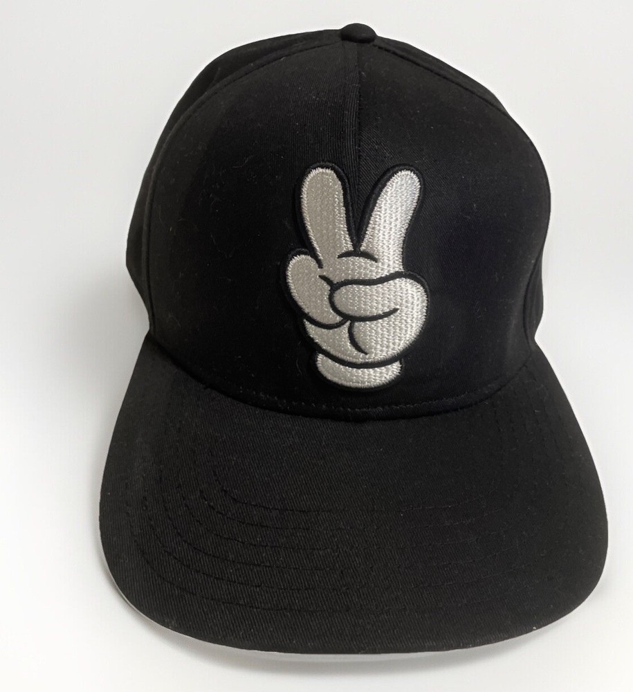 Walt Disney World Black & White Mickey Mouse Peace Sign Hand Hat Cap. Item is in very good condition HAS CUT TAG, please see pictures for further details feel free to contact me for any questions...