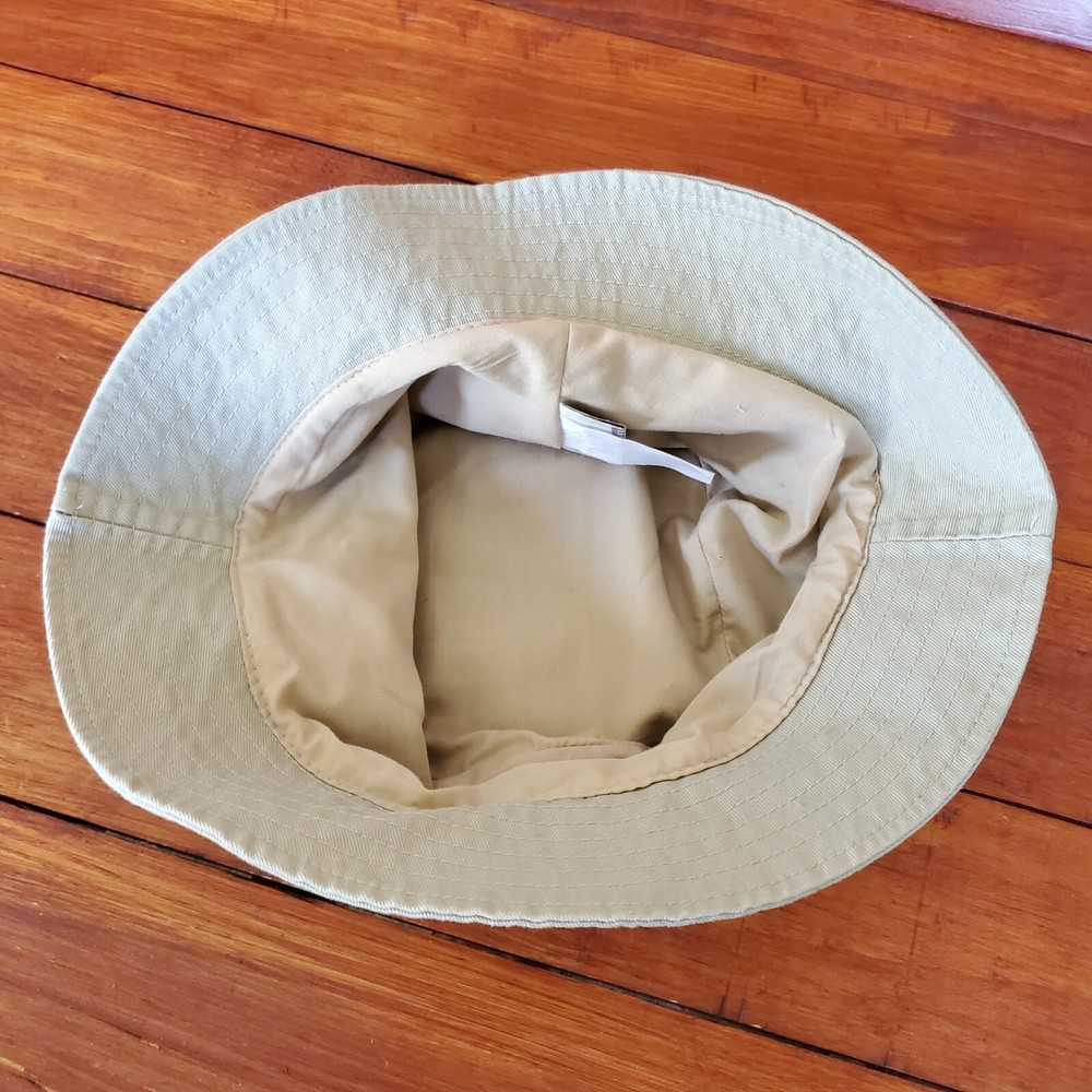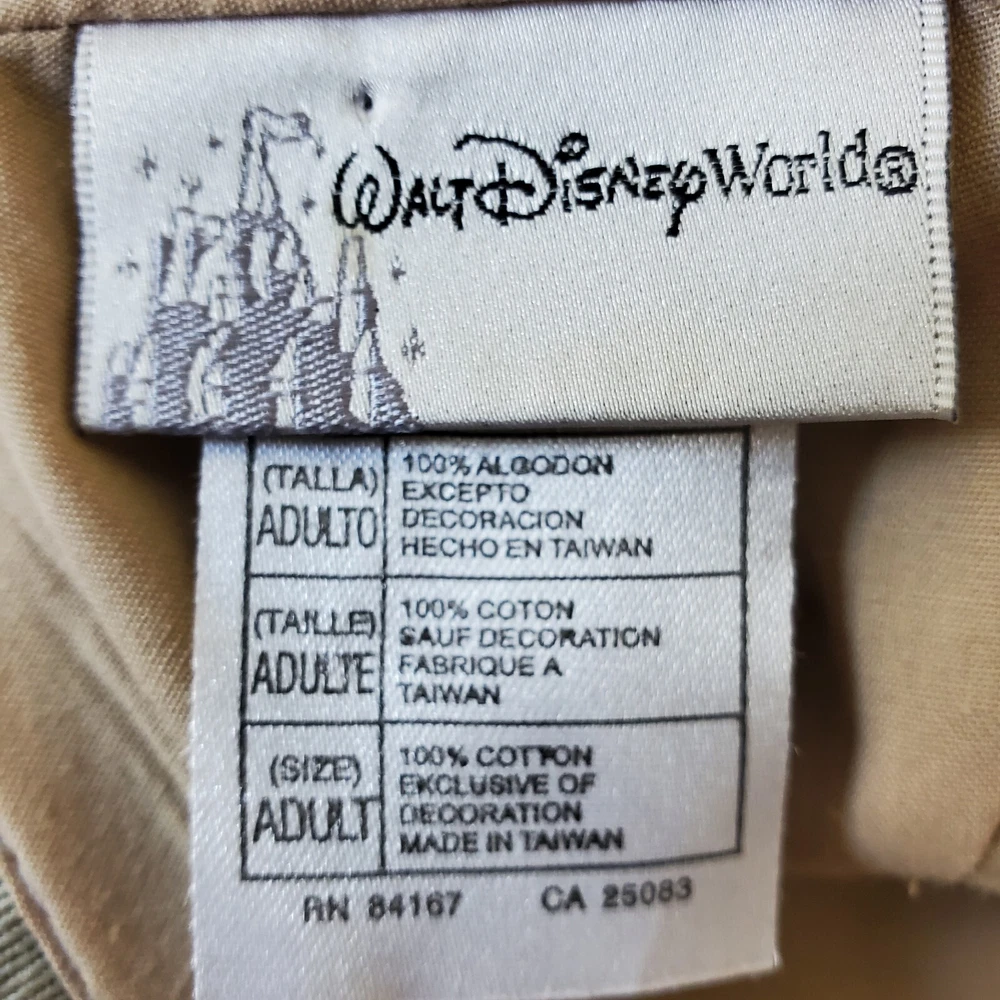 This Walt Disney World bucket hat in tan and brown is perfect for your next outdoor adventure. With its nature, jungle, and safari themes, it's ideal for summer and spring. Made from 100% cotton, it's comfortable and stylish. The hat is pre-owned but still in great condition. Personalize your hat with pins to make it unique. It's one size fits all for women and great for travel or casual wear. This bucket hat is an official Disney product and was made in Taiwan. Get ready for your next vacation with this fun and fashionable hat.