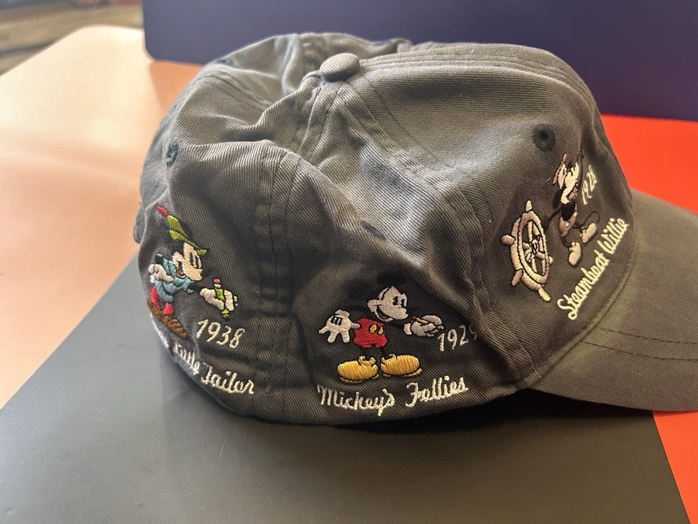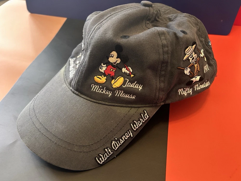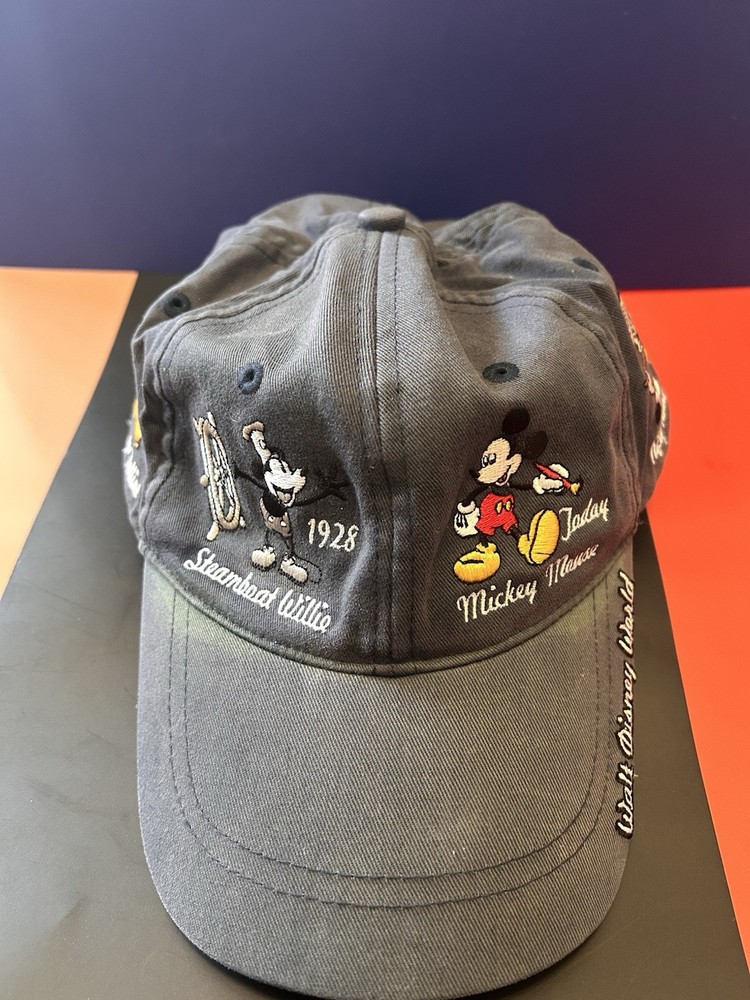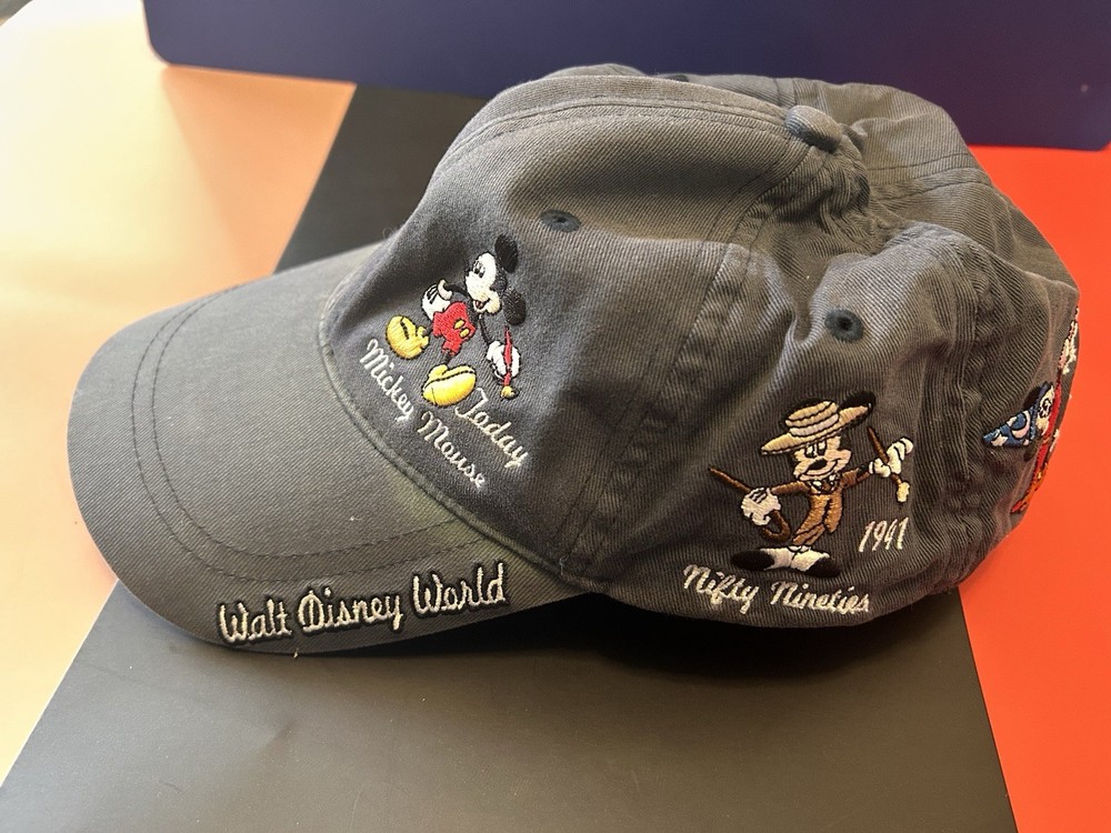 Showcase your Disney fandom with this classic Walt Disney World Mickey Mouse Through the Years Baseball Cap. Featuring an iconic silhouette of the beloved character, this hat is a timeless piece of memorabilia for any Disney enthusiast. The black canvas is accented with a tan Mickey Mouse emblem, creating a look that's both stylish and nostalgic. Designed to fit most with its one-size-fits-all approach, this hat makes for a perfect accessory for any adult fan. Whether you're out for a casual day or attending a Disney event, this unisex cap is an effortless way to celebrate the magic of Disney and its storied heritage.