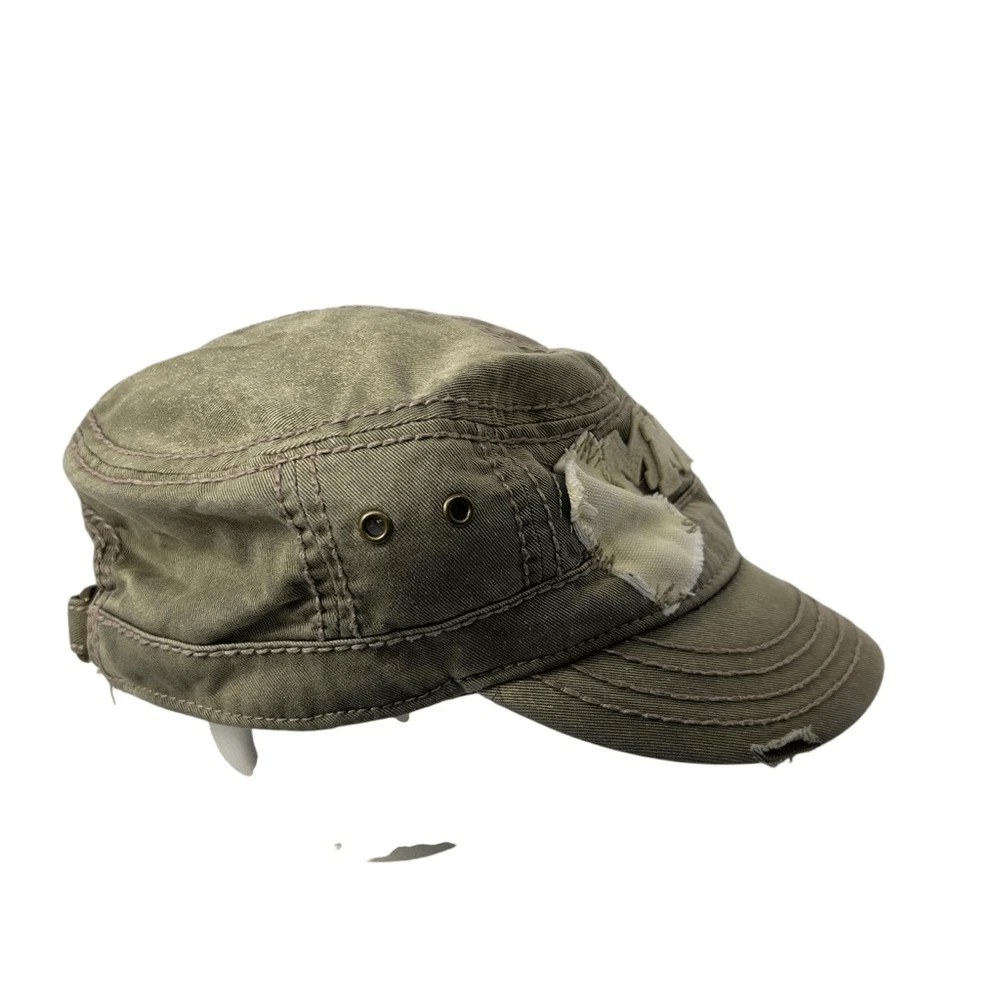 Distressed Spots on Brim are Part of the Design, not a flaw Adjustable. One Size Fits Most. Great preloved condition!...