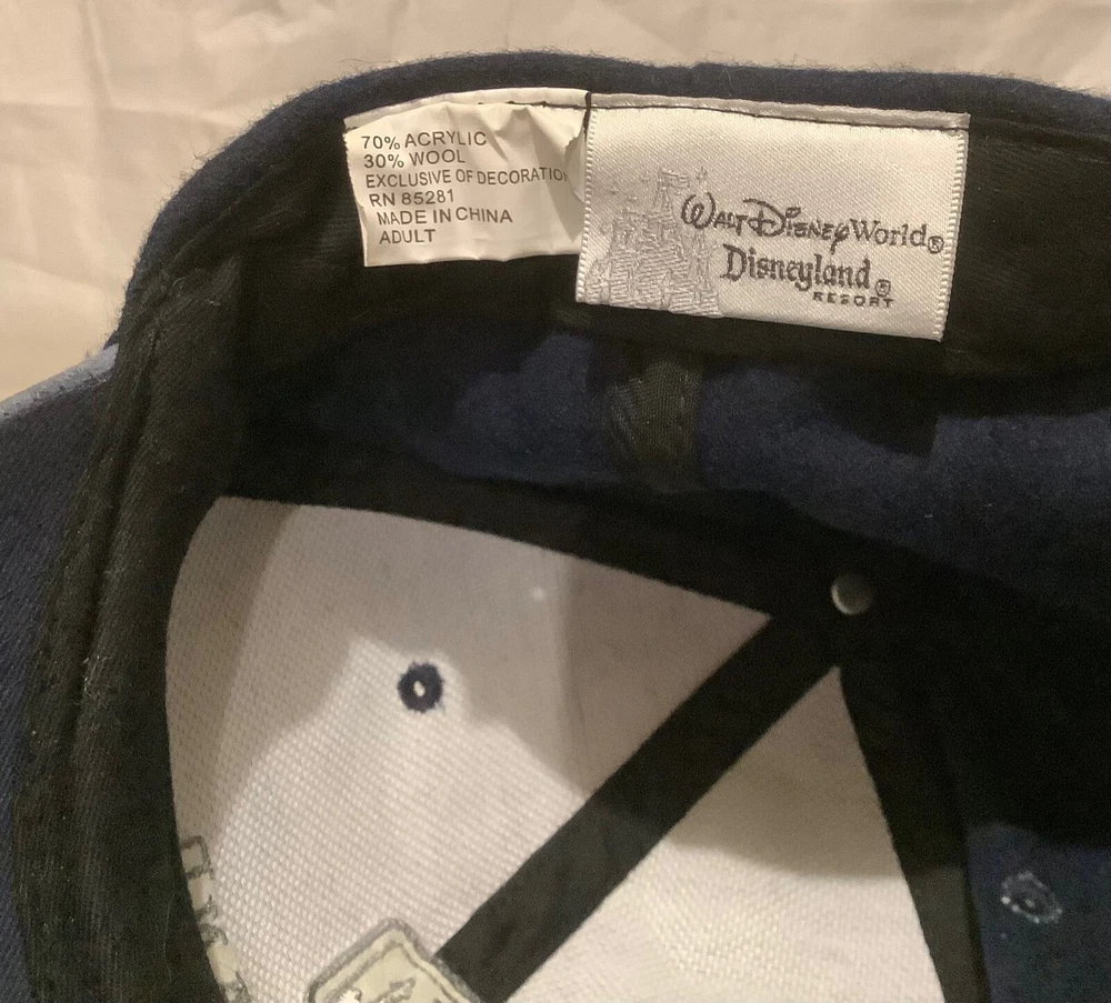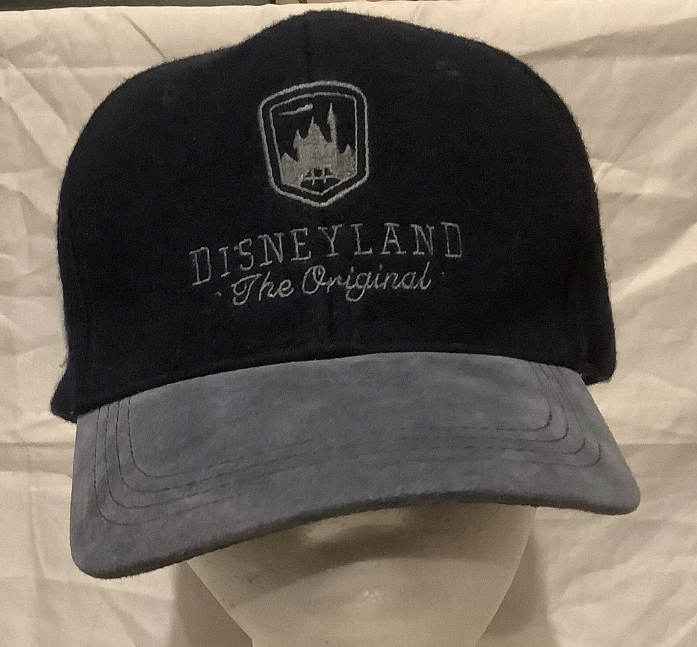Disney Resort wool baseball cap is in excellent condition. Looks very clean. Hat is wool and the brim has a suede like texture. The front reads “Disneyland The Original” with a picture of the castle. Adjustable with strap back.