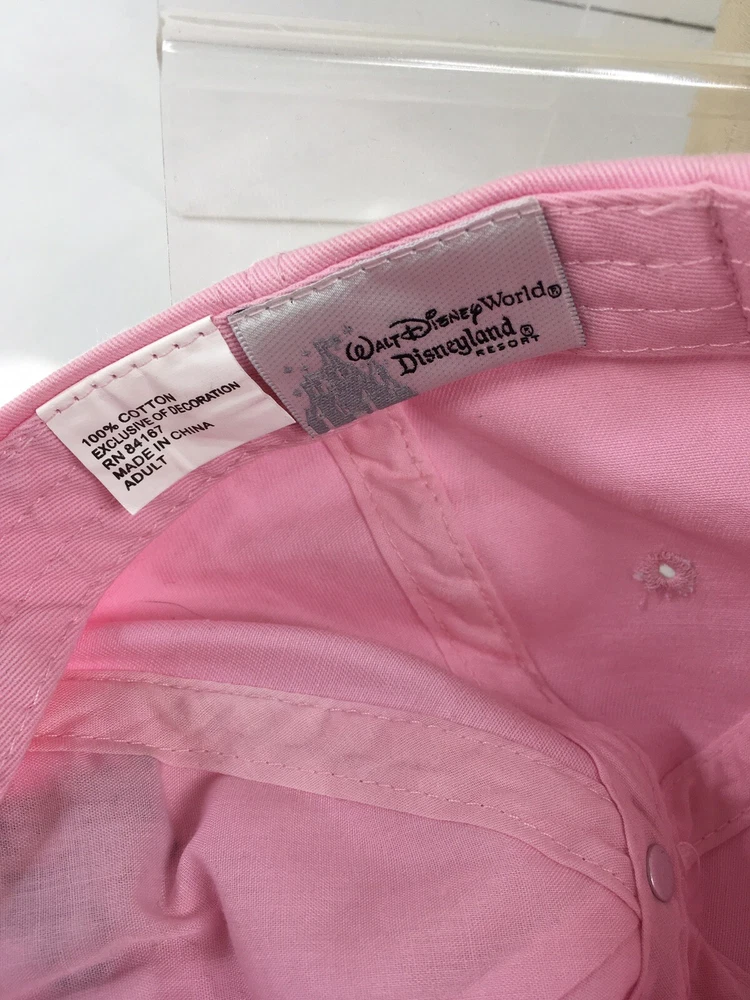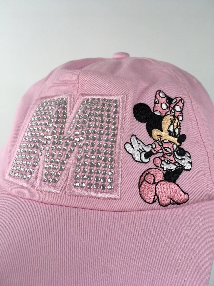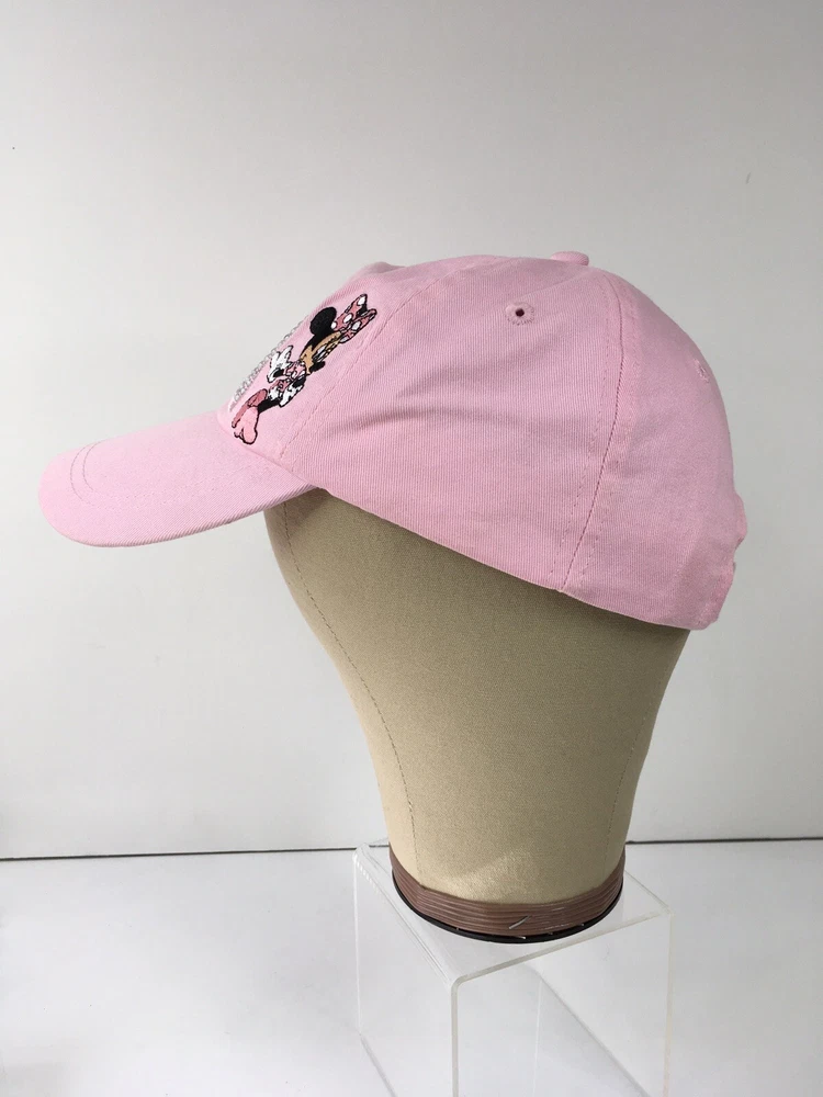 Walt Disney World Disneyland Resort Minnie Mouse Bling Pink Baseball Hat Cap. Condition is Used. Shipped with USPS First Class. Some signs of use. Discolored areas shown in photos. All jewels are intact. Adjustable back with hook and loop closure.