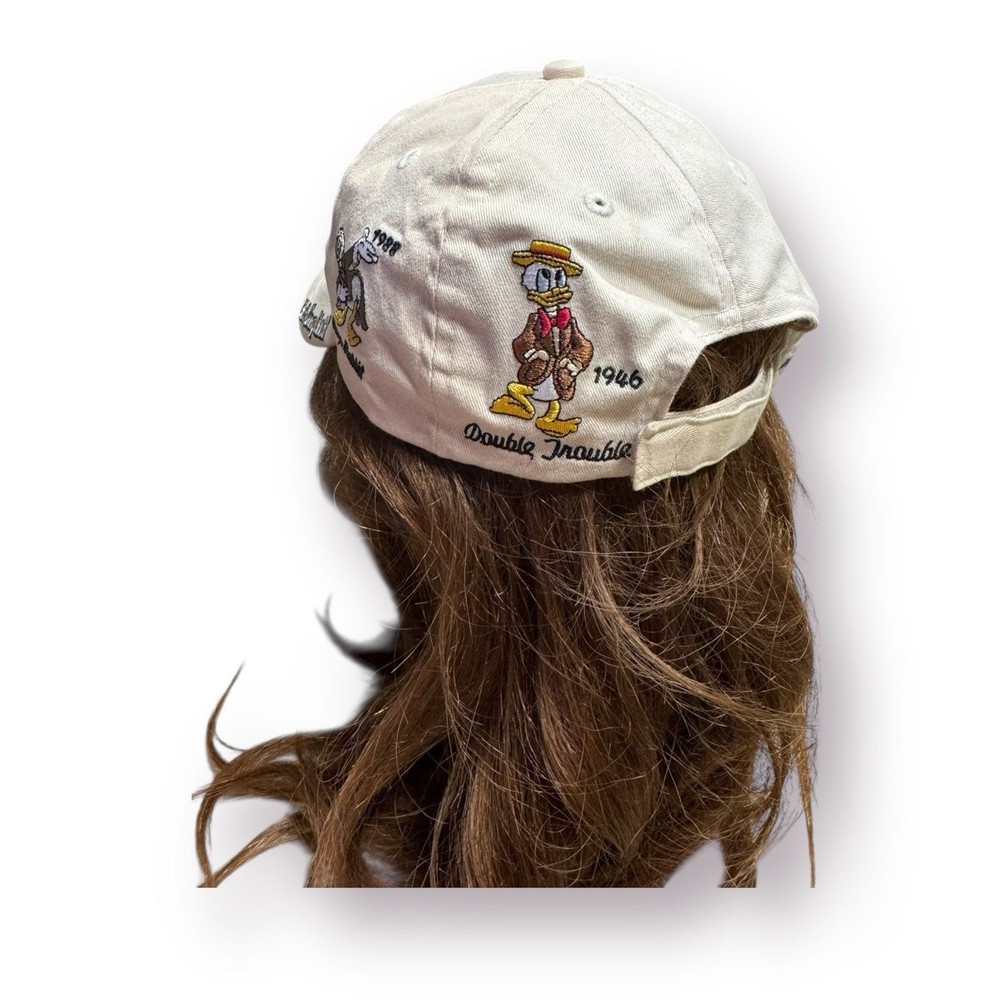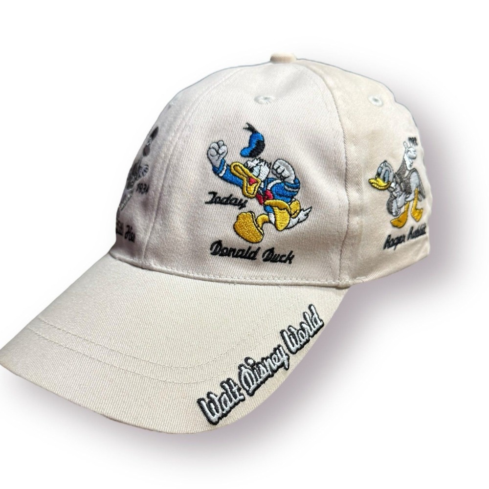 Walt Disney World Donald Duck “Faces Of Donald” Adult One Size Adjustable VTG This is a rare vintage Walt Disney World Donald Duck "Faces Of Donald" adult one size hat. The hat features a white color and a design that showcases different angles of Donald Duck's face. This collectible item is perfect for any Disney fan and is suitable for unisex wear. Never worn, like new!