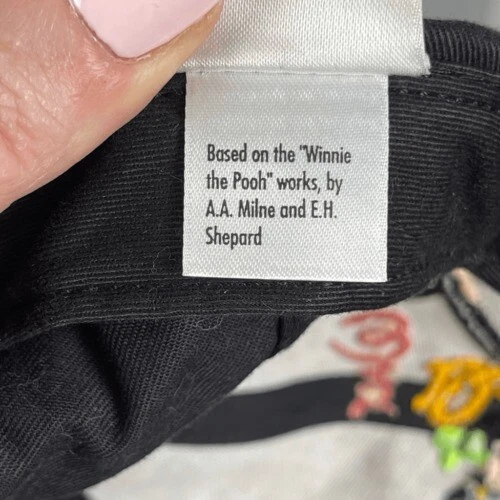 Walt Disney World Embroidered Black Adjustable Hat Cap Adult Winnie the Pooh FLAT LAY MEASUREMENTS: Center Top to Brim: ~6" Front Brim: Depth ~2.75", Width ~7" Head Width: ~8" CONDITION: Pre-owned, excellent condition with no visible flaws. COLOR: Black FEATURES: Embroidered "Walt Disney World" logo, adjustable strap, unisex design MATERIAL: 100% Cotton SIZE: Adult CARE INSTRUCTIONS: Spot clean recommended MADE IN: China PERFECT FOR: Disney enthusiasts, casual wear, sun protection Walt Disney World hat, Disney cap, embroidered Disney hat, adjustable cap, unisex Disney apparel, black Disney hat, theme park merchandise, souvenir hat, casual headwear, Disney fan gear, Pooh fan gear, Pooh hat, Winnie the Pooh cap