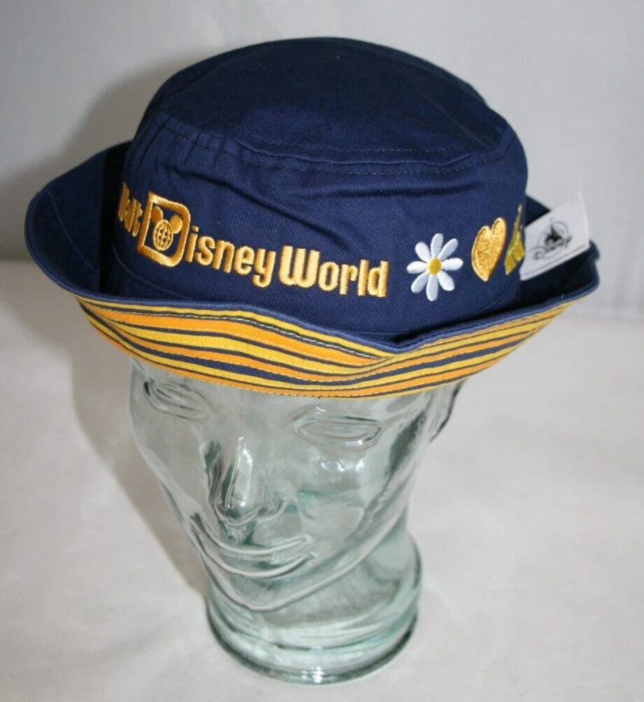 DISNEY PARKS EMBROIDERED "WALT DISNEY WORLD" NAVY YELLOW BUCKET HAT EMBROIDERED FLOWER, HEART AND CASTLE ON FRONT MATERIAL: 100% COTTON ONE SIZE FITS MOST ADULTS NEW WITH TAGS ITEM IS FROM A SMOKE FREE HOME :) THANKS FOR LOOKING AT ANOTHER FAB FIND!!! LIVE LIFE FAB