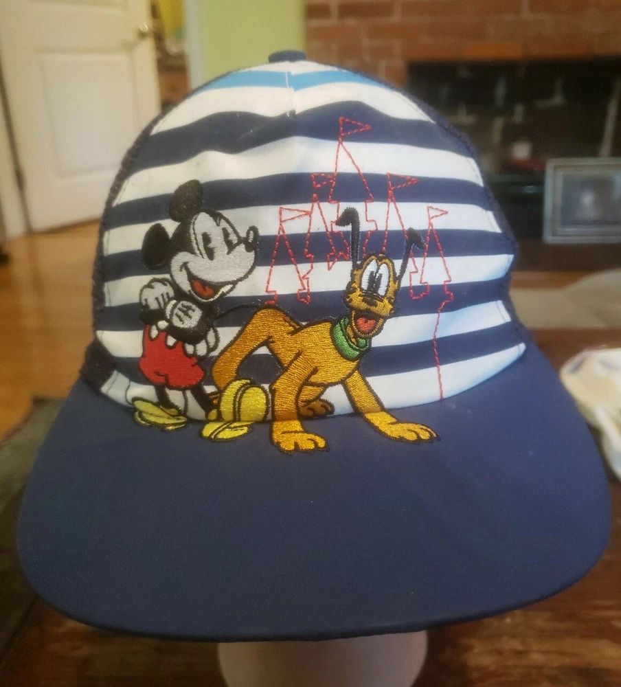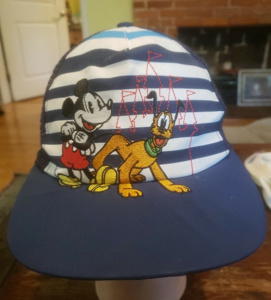 Walt Disney World Embroidered Mickey Pluto Trucker Hat Snap Back Cap Blue Mesh. Youth Size...