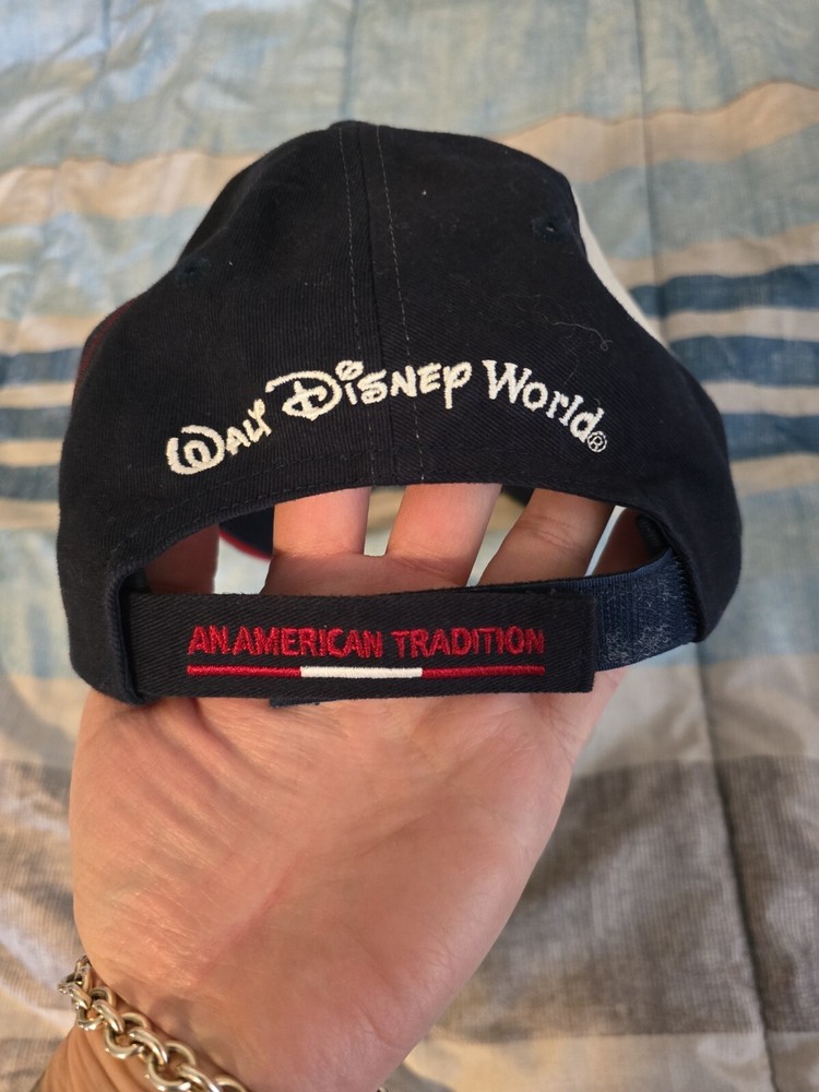 Walt Disney World hat "WDW" with a flag pattern. Back says "An American Tradition". Disney tag inside, missing other tag. Adjustable strap. In fantastic condition....