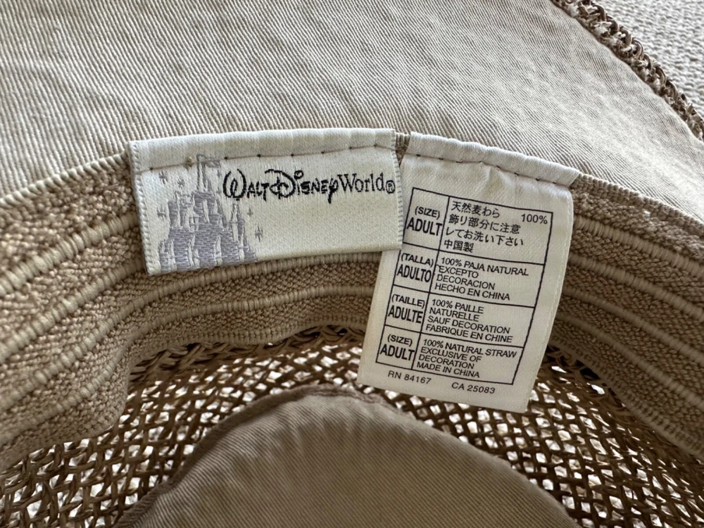 This Walt Disney World flat brim hat is a must-have for any Disney fan. Made of 100% natural straw, this hat features a golden brown color with black ribbon detailing. It is suitable for adults and has a size of L. The hat is perfect for unisex wear and has a Walt Disney World theme. The hat is a great addition to any Disneyana collection and is perfect for everyday wear or for special occasions. It is an authentic Disney product and is made in China. Get this Walt Disney World flat brim hat today to show off your love for Disney!