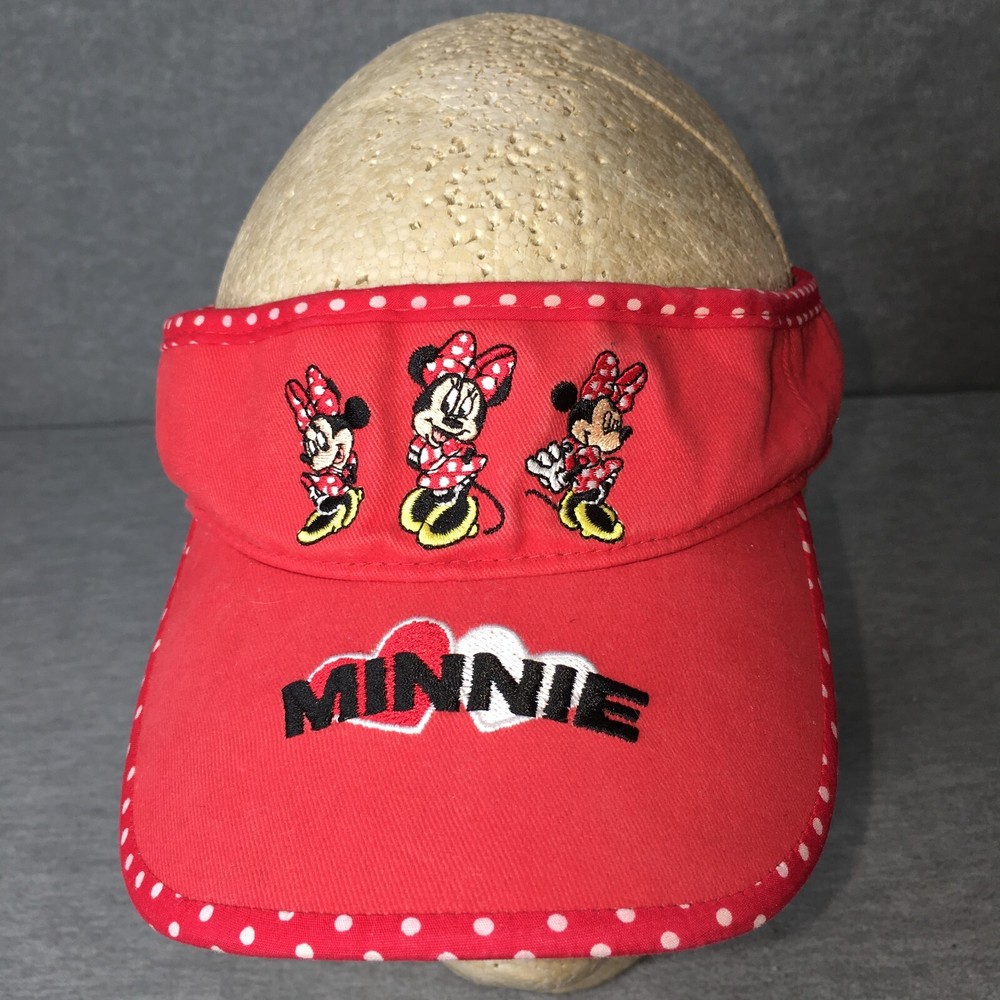Walt Disney World Girls Minnie Mouse Red Polkodot Visor Hat Cap Embroidered...