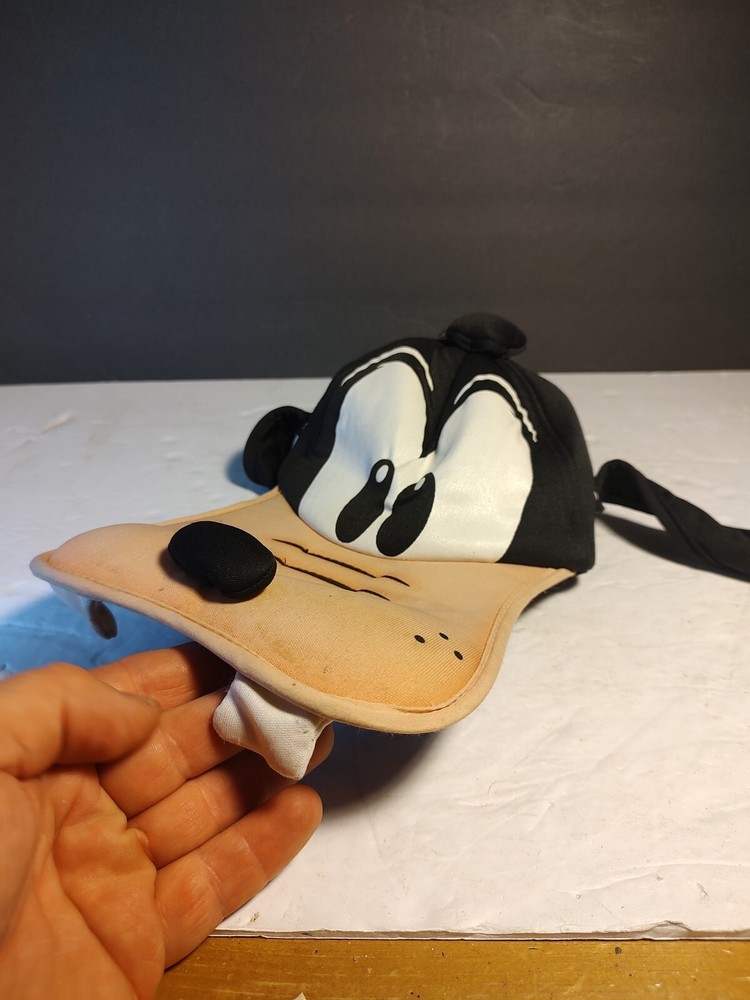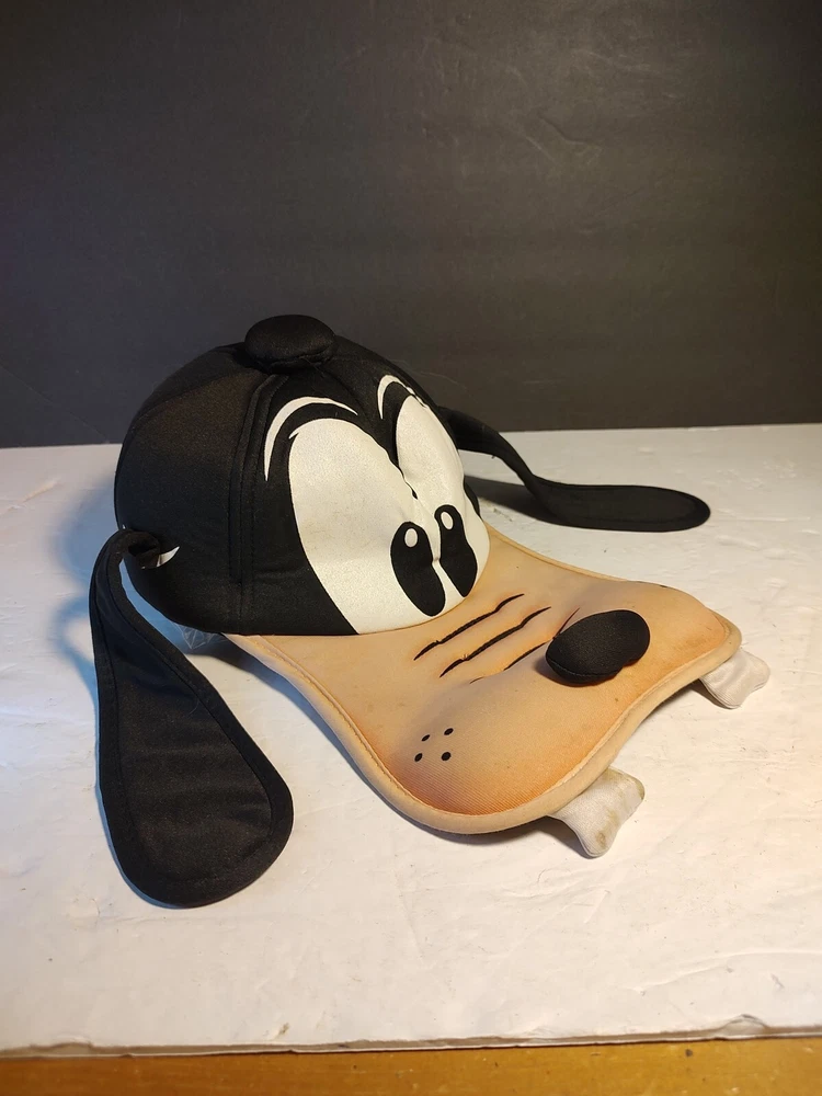 Get ready to show off your love for all things Disney with this vintage Walt Disney World Goofy hat. This 3D hat features floppy ears and teeth, making it the perfect addition to any Disney fan's collection. It comes in one size, suitable for adults of any gender, and is made in Taiwan. Represent your favorite character, Goofy, with this black hat that is perfect for any Disney event or convention. This hat is a must-have for any Disneyana collector and is sure to make a statement. Don't miss out on the chance to add this unique piece to your collection. Item 517