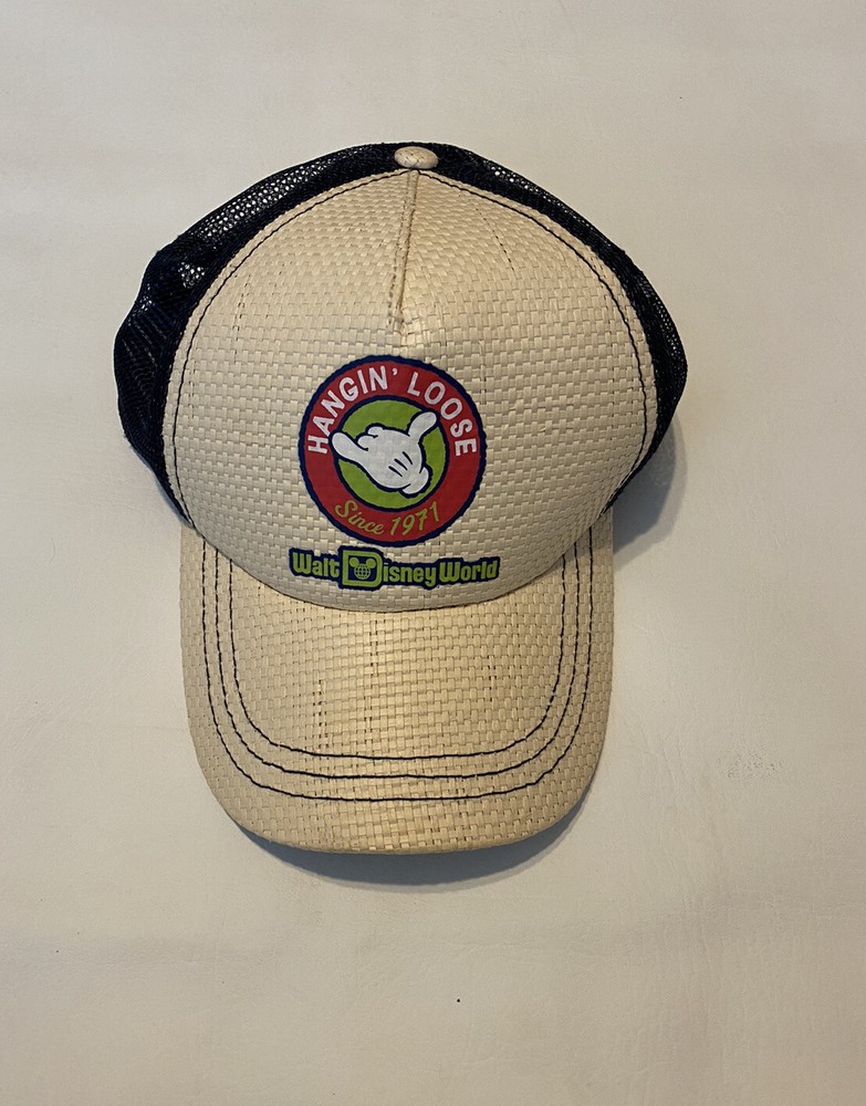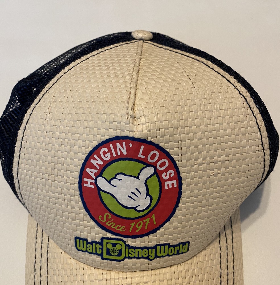 Walt Disney World Hang Loose Baseball Cap Hat Strapback. Disney parks tag. The material tag has been cut out, just a tiny piece left. The cap is a weave (white) design in front and black mesh in back. Good condition with a tiny mark on the inside. The weave has some spacing but appears to have been made that way. Please see pictures for detailed description. Smoke free home. 21k1130t4