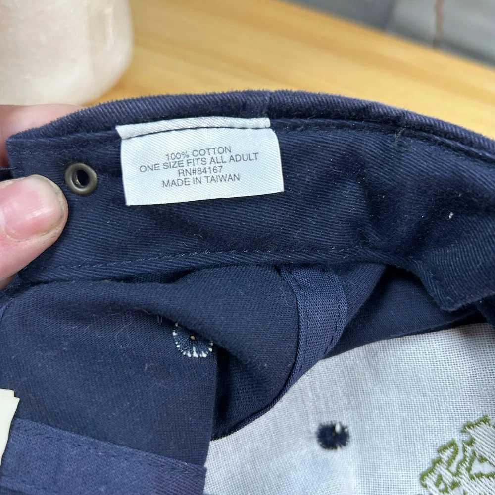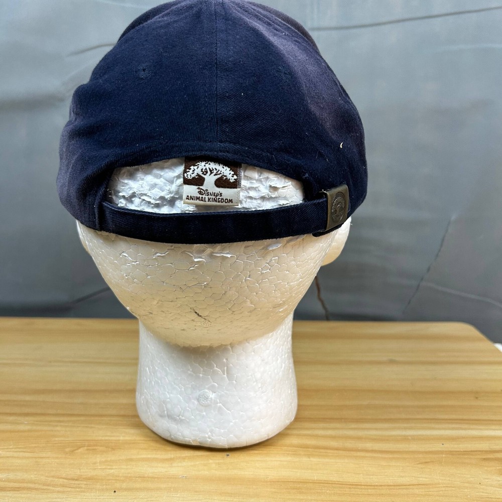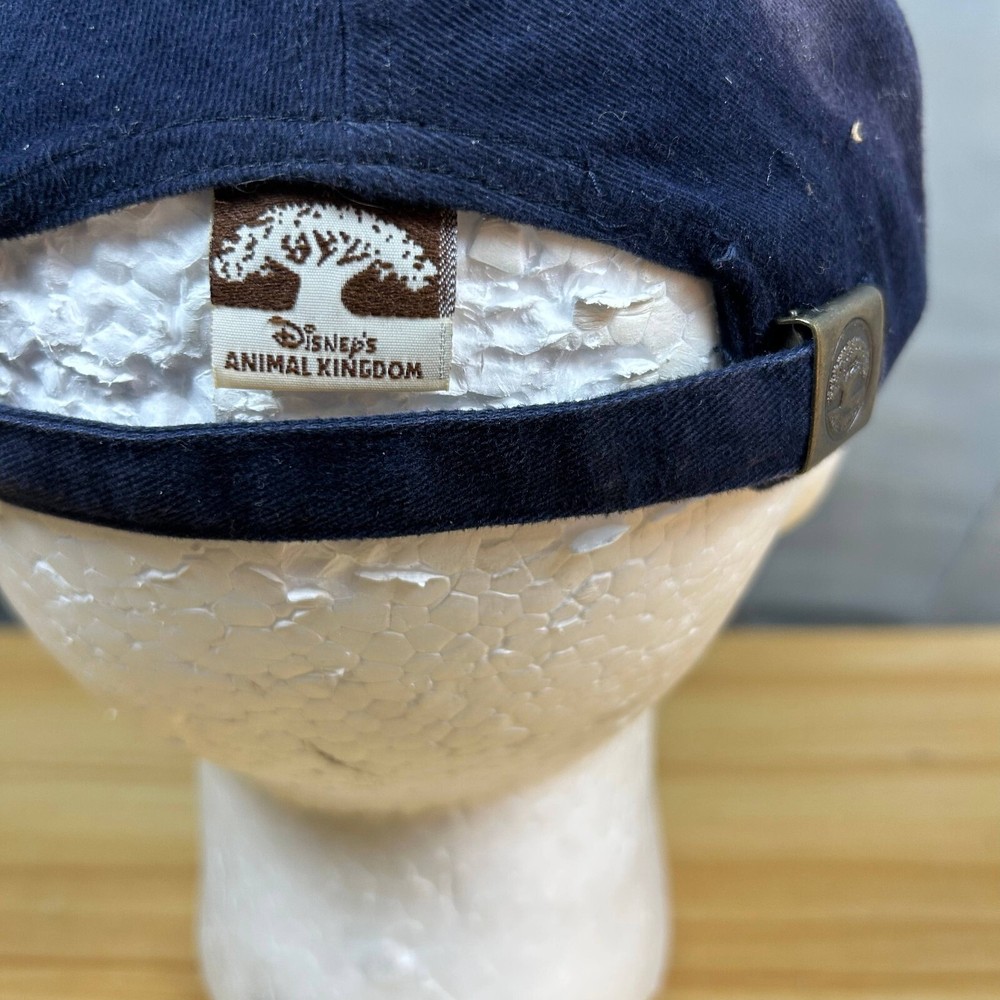 This Walt Disney World cap is a stylish accessory for adults, featuring a blue cotton design with the Animal Kingdom logo embroidered on the front. The adjustable strap ensures a comfortable fit for most head sizes. It's an excellent choice for showcasing your love for Disney's Animal Kingdom, whether you're visiting the park or simply enjoying everyday activities.