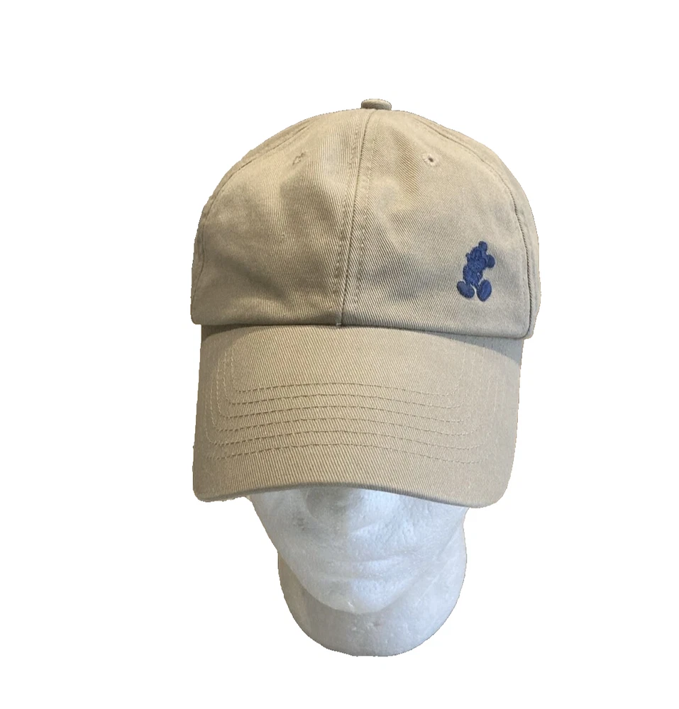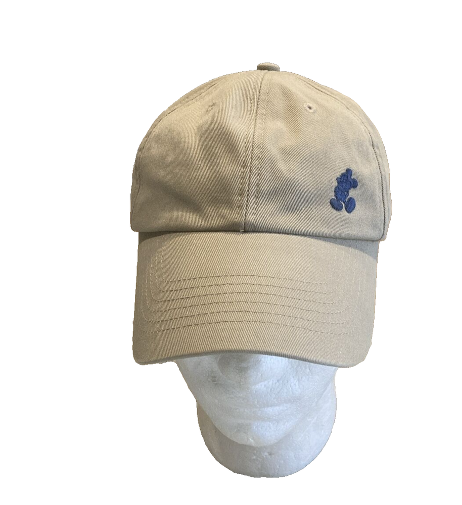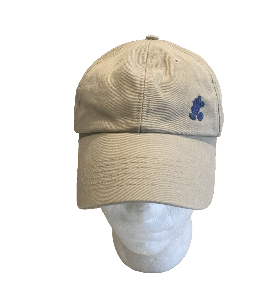 Walt Disney World Hat Cap Strap Back Tan Baseball Dad Khaki Adult Blue Mickey Mouse Logo Adult Strap back-One Size Adjustable In gentle preowned condition. No rips From a smoke free home Clothing and Fabric Items: All Clothing and Fabrics Items have been cleaned/laundered per Ebay Standards.