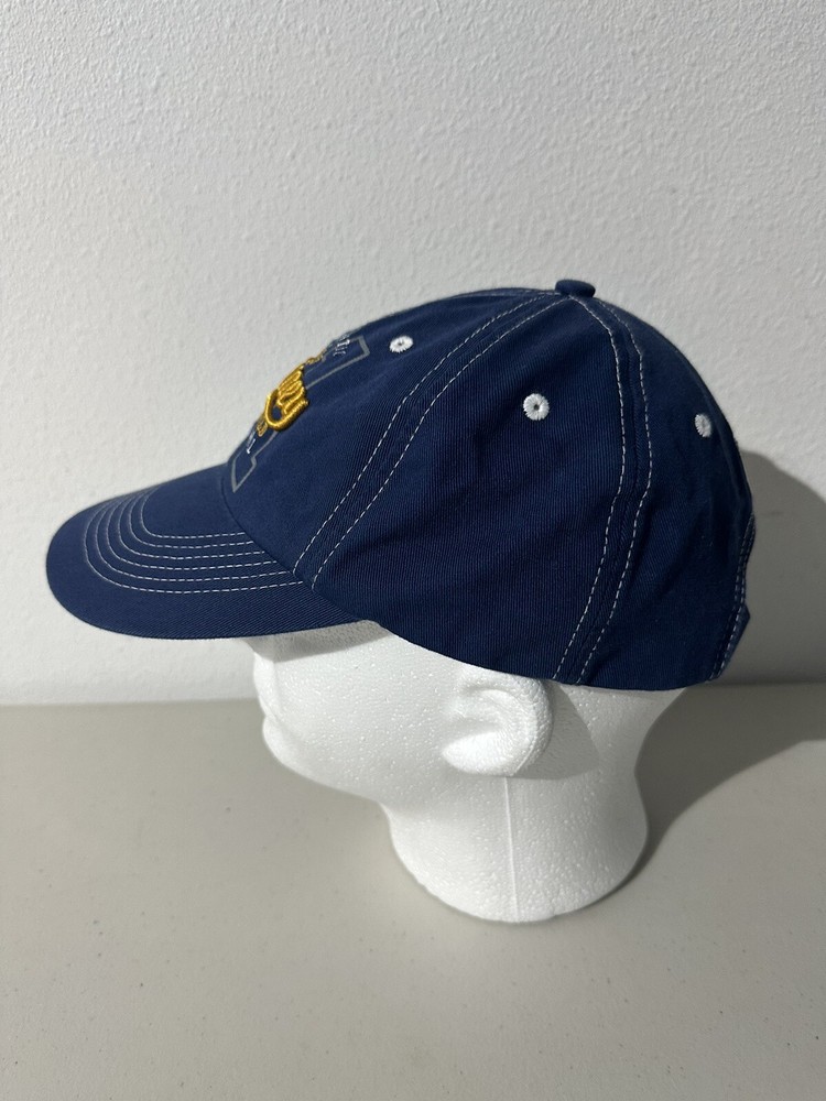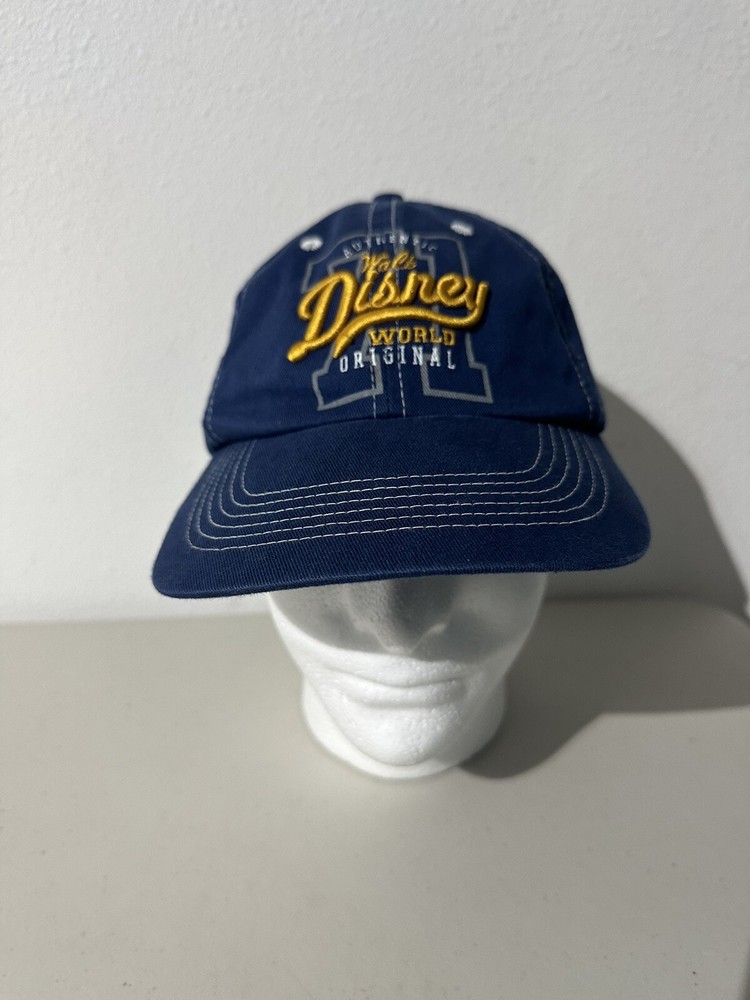 Add some magic to your outfit with this Walt Disney World navy blue and gold hat featuring Mickey Mouse. The adjustable hat is suitable for both men and women, making it the perfect accessory for any Disney fan. The hat is part of the Disneyana contemporary collection and is a must-have for collectors and enthusiasts. The Disney franchise is known for its timeless characters and stories, and this hat is no exception. Wear it to the park, on vacation, or as a stylish addition to your everyday outfit.