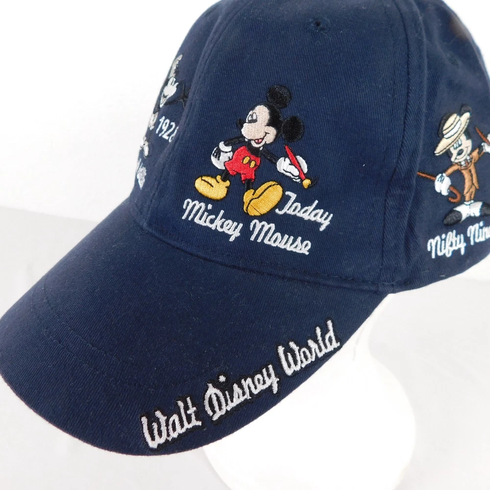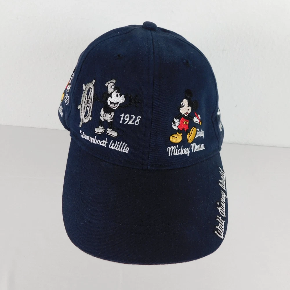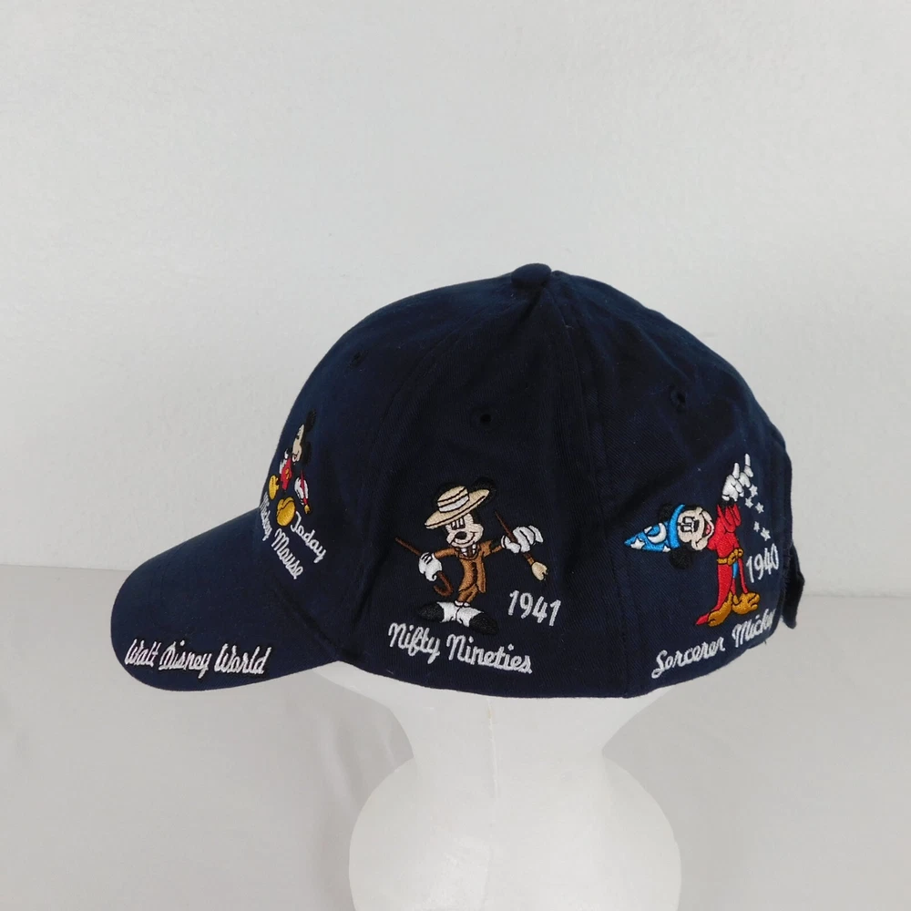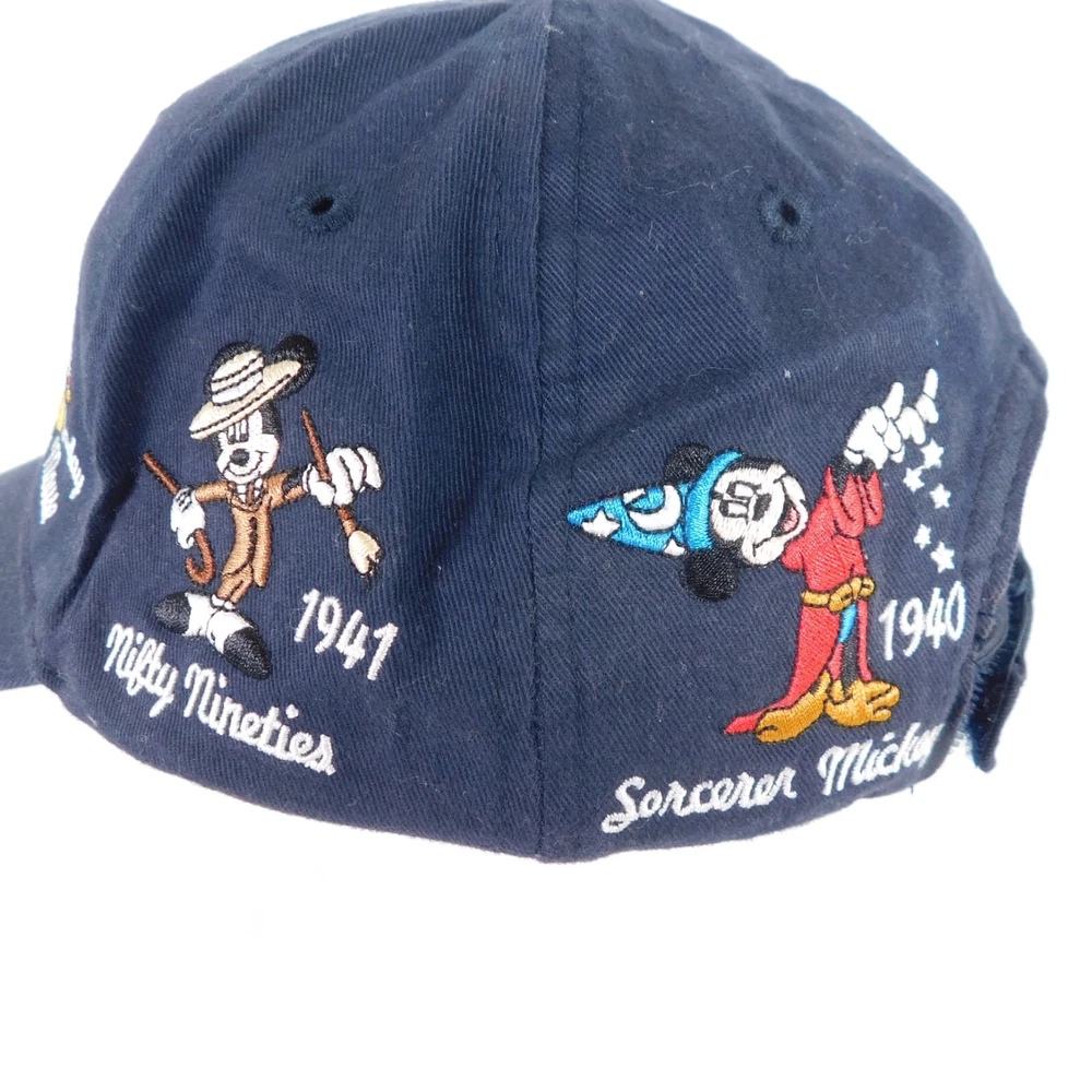 Walt Disney World Hat Unisex Blue Baseball Cap Cotton Adult Hook and Loop Closure Embroidered Mickey Mouse Through the Years Adjustable Light wear and use, may need a damp cloth...