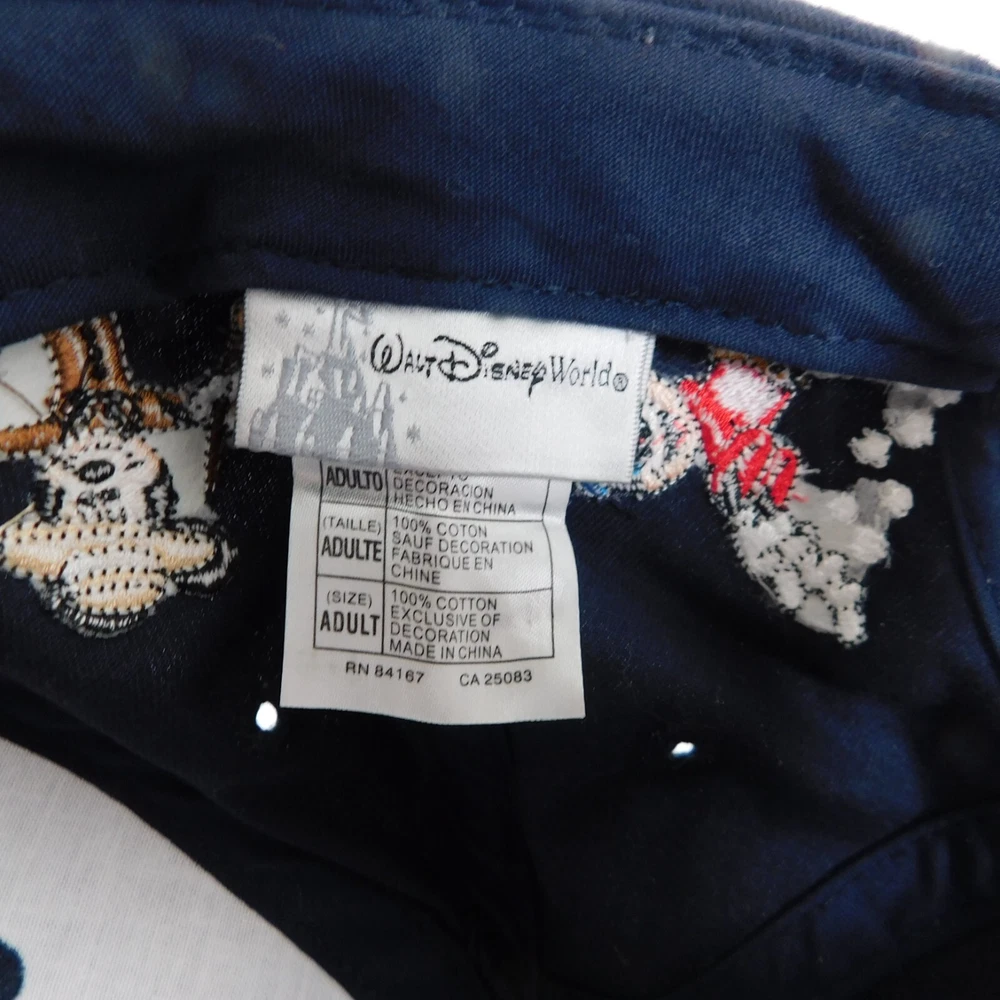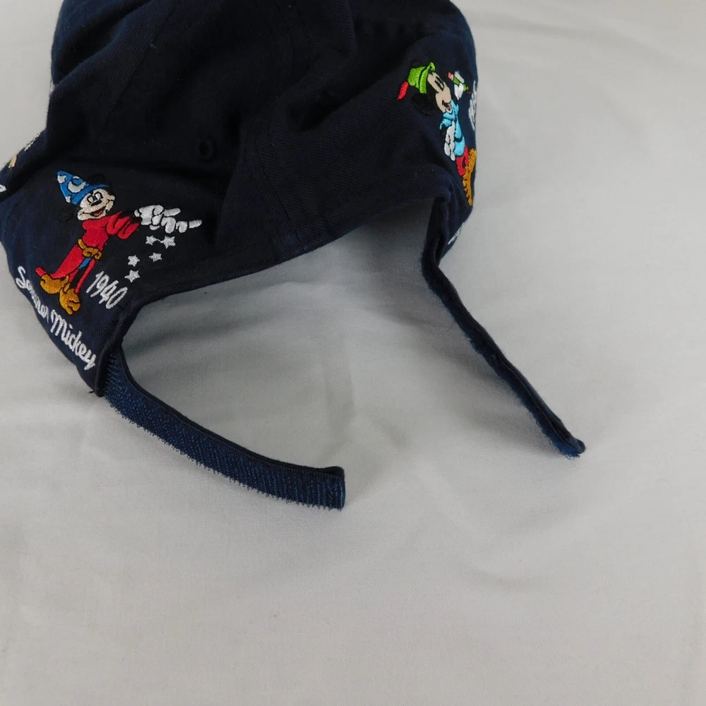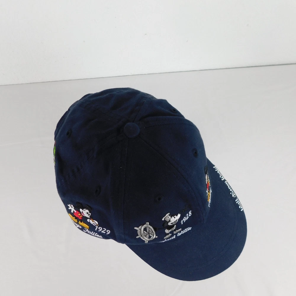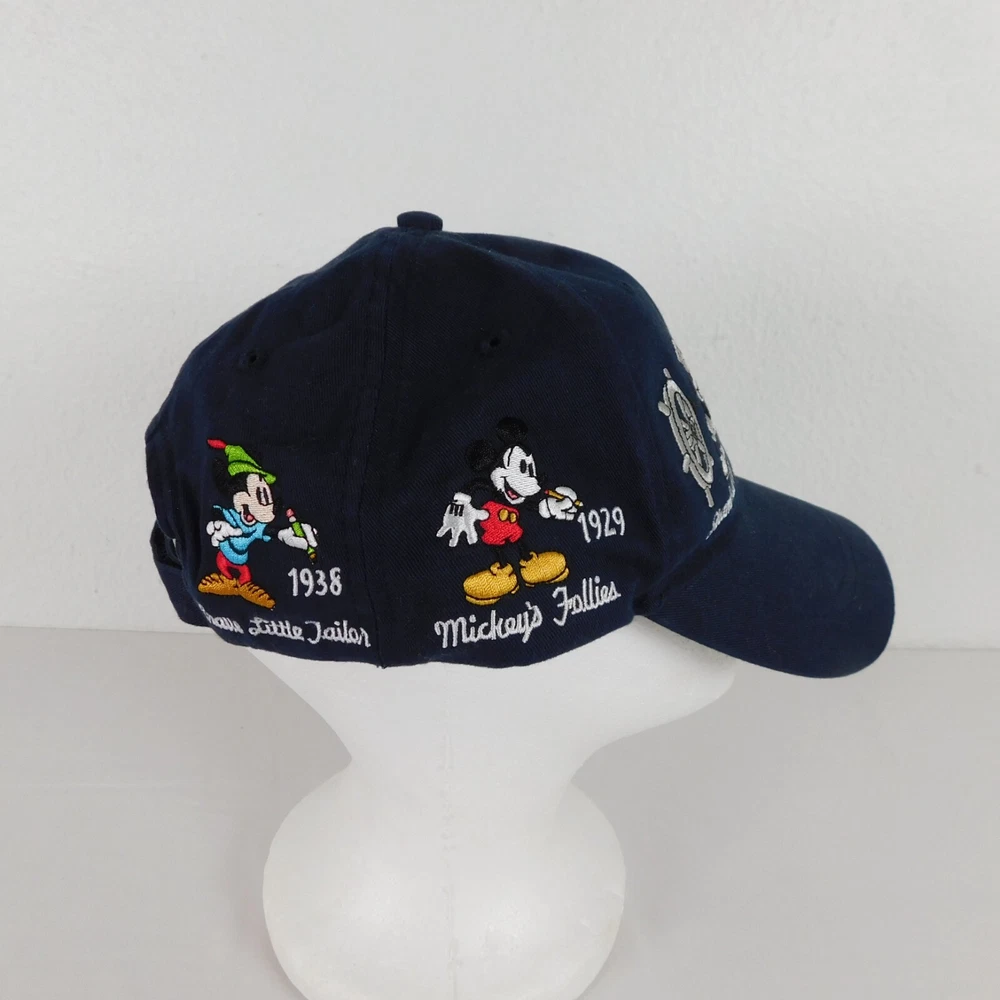 Walt Disney World Hat Unisex Blue Baseball Cap Cotton Adult Hook and Loop Closure Embroidered Mickey Mouse Through the Years Adjustable Light wear and use, may need a damp cloth...