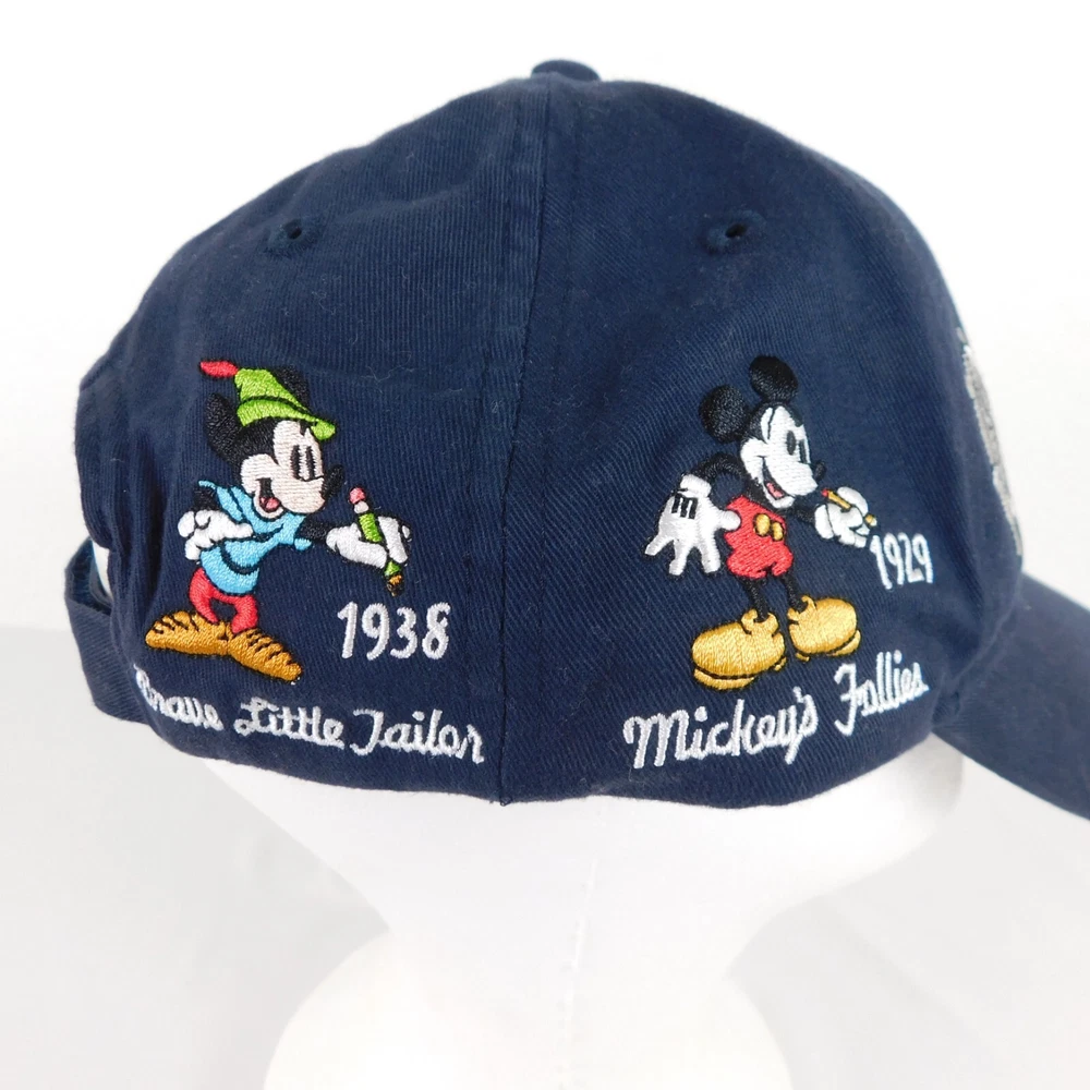 Walt Disney World Hat Unisex Blue Baseball Cap Cotton Adult Hook and Loop Closure Embroidered Mickey Mouse Through the Years Adjustable Light wear and use, may need a damp cloth