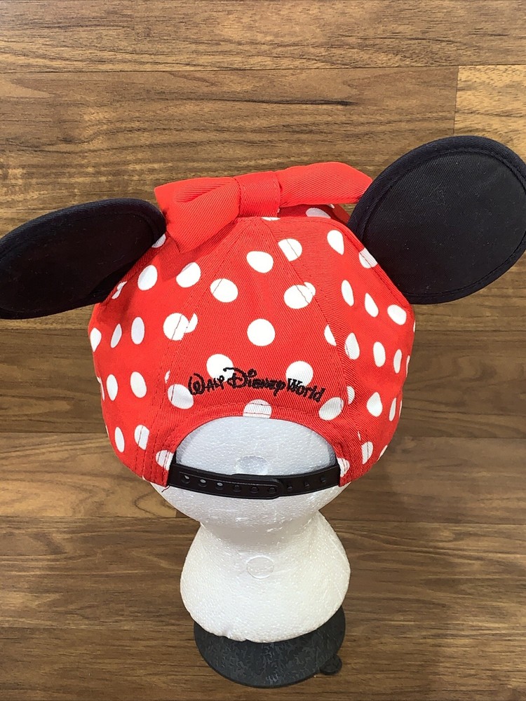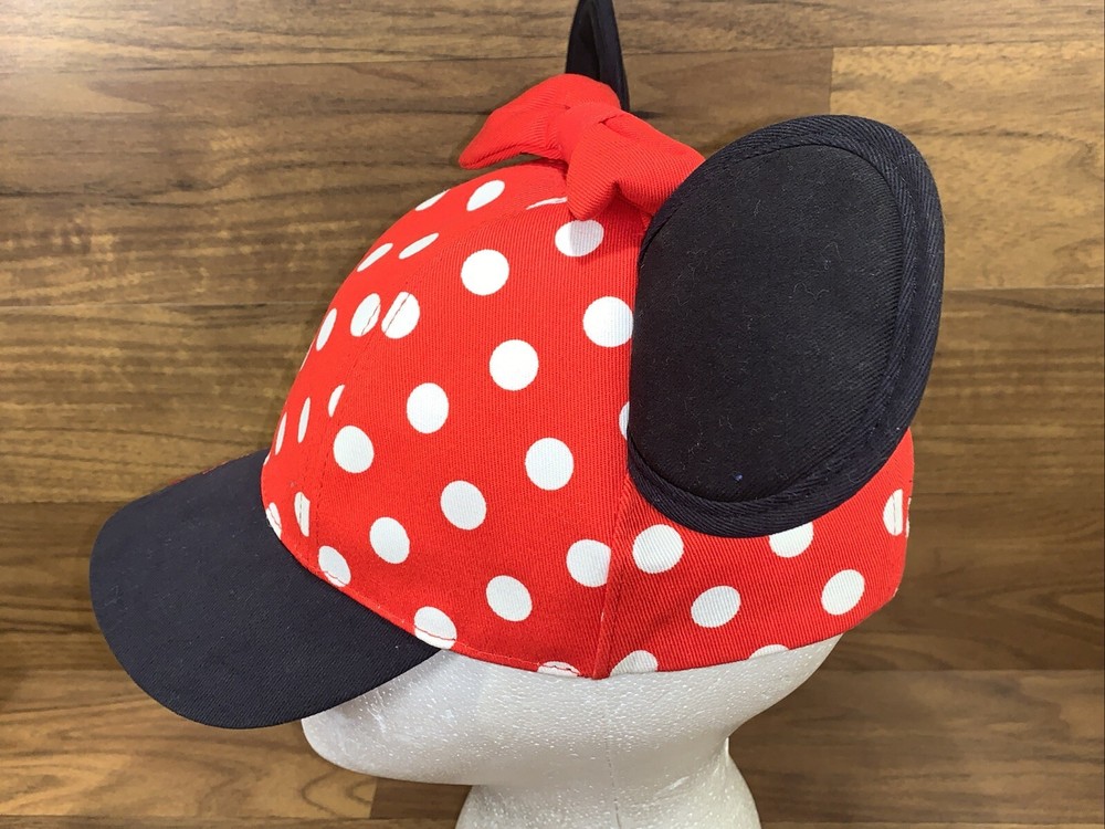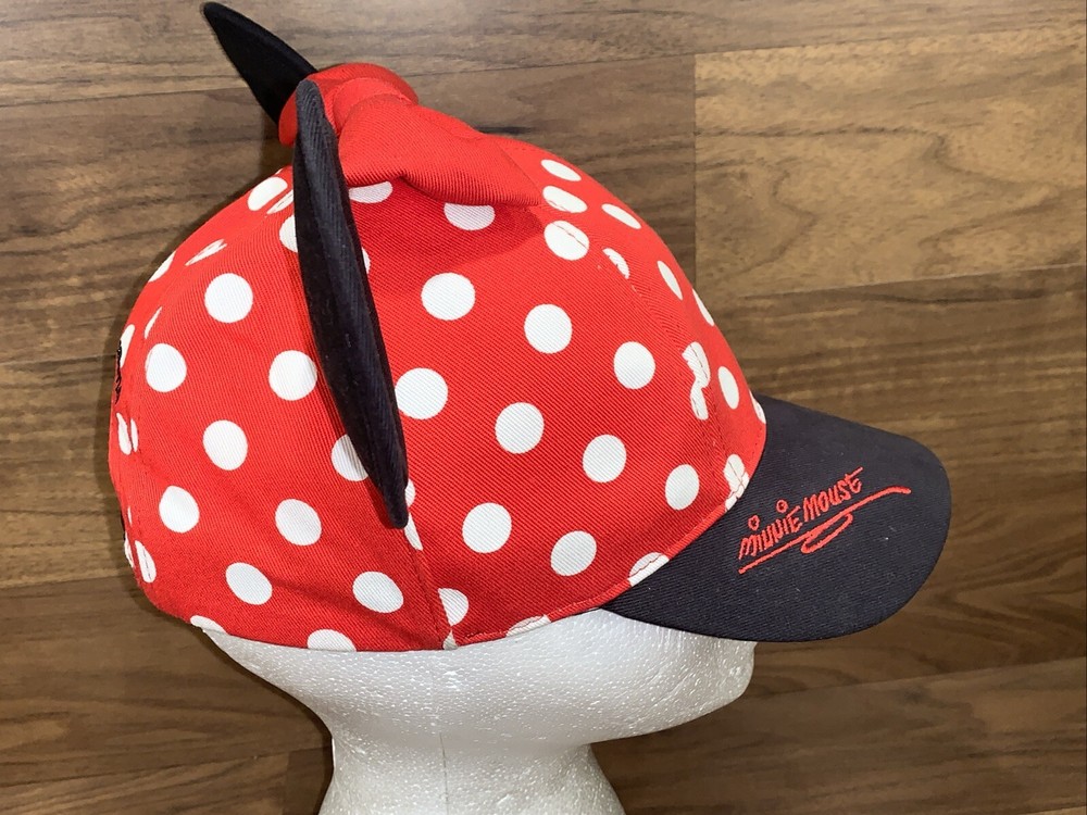 Get your little one ready for a magical day at Walt Disney World with this adorable Minnie Mouse ears bow cap hat. The red polka dotted hat is perfect for toddlers and features an adjustable strap for a comfortable fit. The hat is adorned with the iconic Minnie Mouse ears, making it a must-have for any Disney fan. This unisex hat is made in Taiwan and is suitable for both boys and girls. It is a great addition to any Disneyana collection and makes for a perfect gift for a toddler who loves Minnie Mouse. Give your little one the gift of magic with this Walt Disney World Minnie Mouse ears bow cap hat.