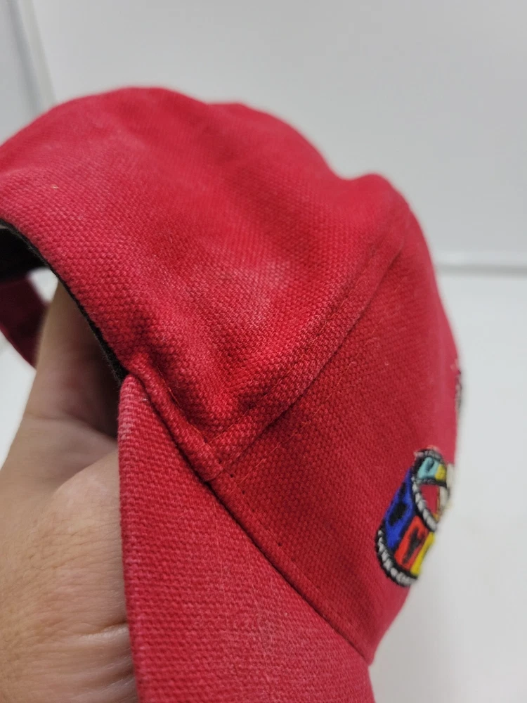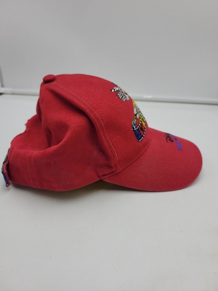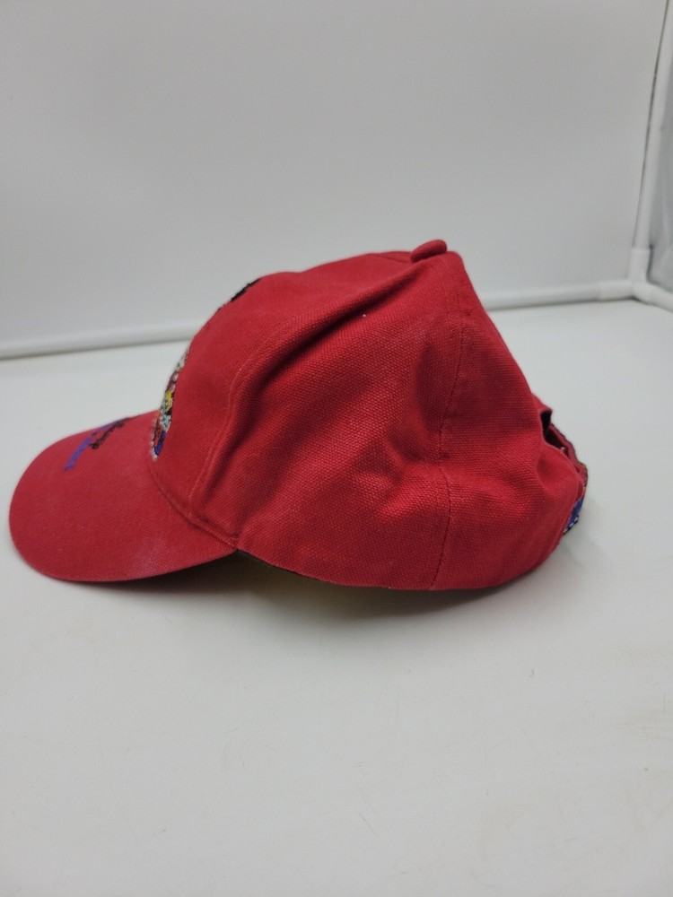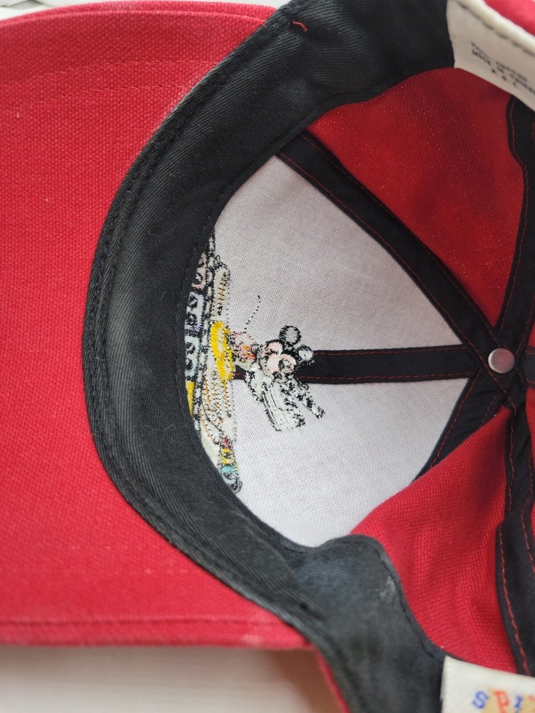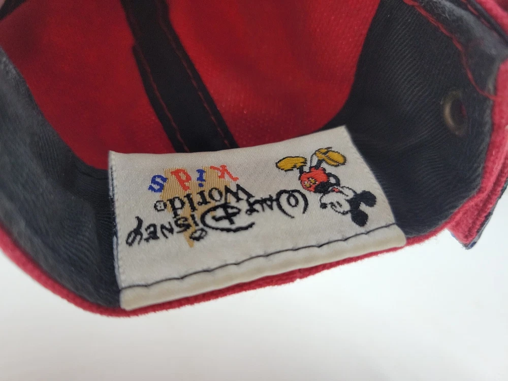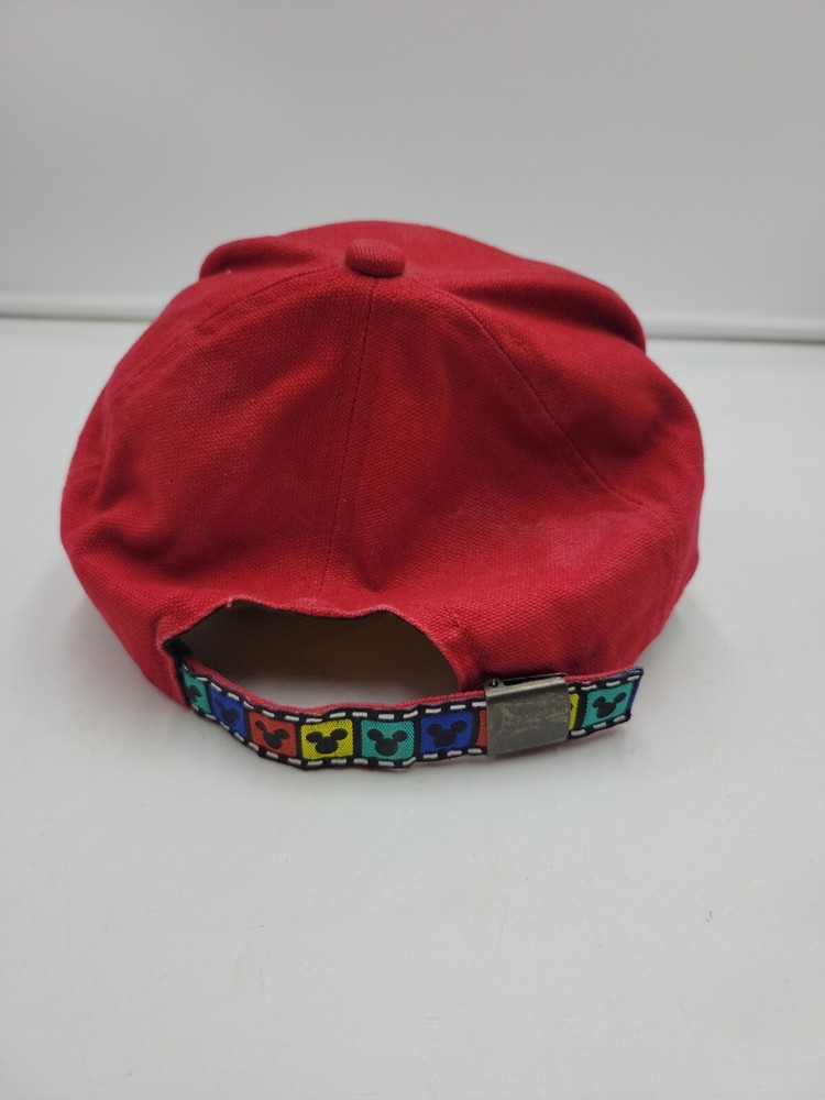 Pretty clean, light wear and light brow wear and stains. Small adult, older Child size, buckle closure. This Walt Disney World MGM Studios Red Mickey Film Child Hat is the perfect addition to any Disney fan's collection. The vibrant red color and iconic Mickey Mouse design make it a must-have accessory for any child who loves the franchise. Crafted with high-quality materials, this baseball hat is both durable and comfortable. It features a clean design with a buckle to adjust the size, making it suitable for children of different ages. Whether as a gift or a personal item, this hat is sure to bring joy to any young Disney fan.