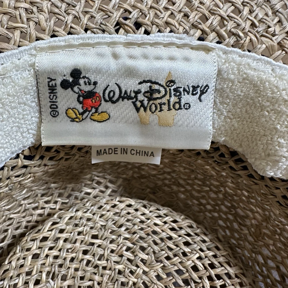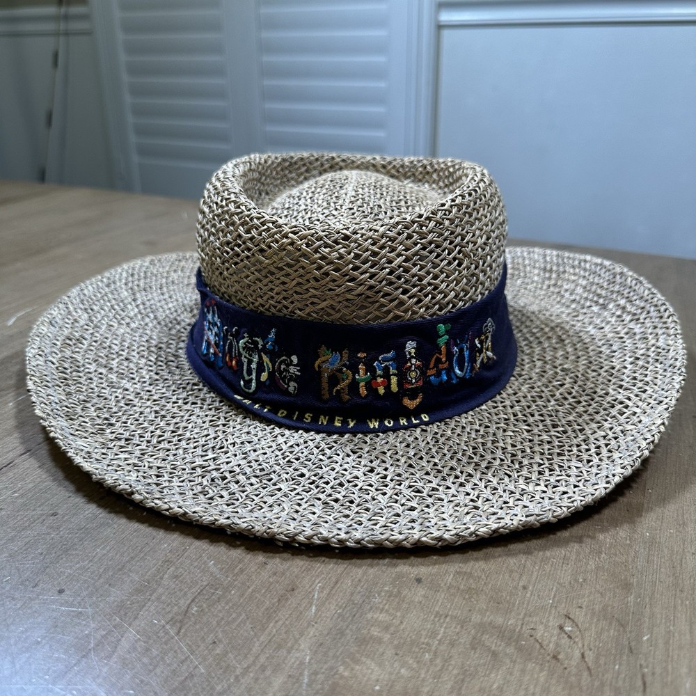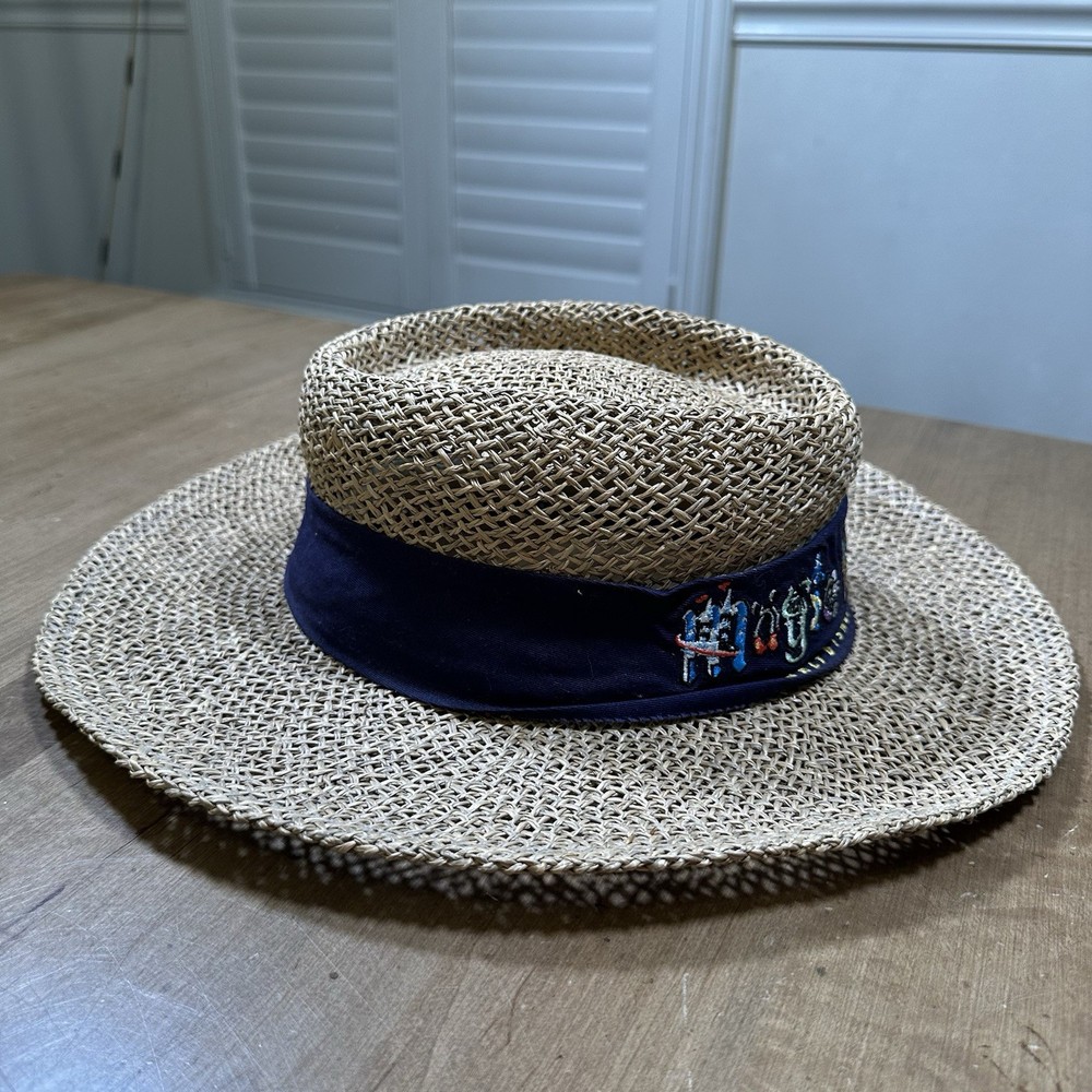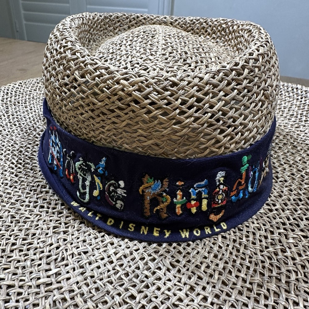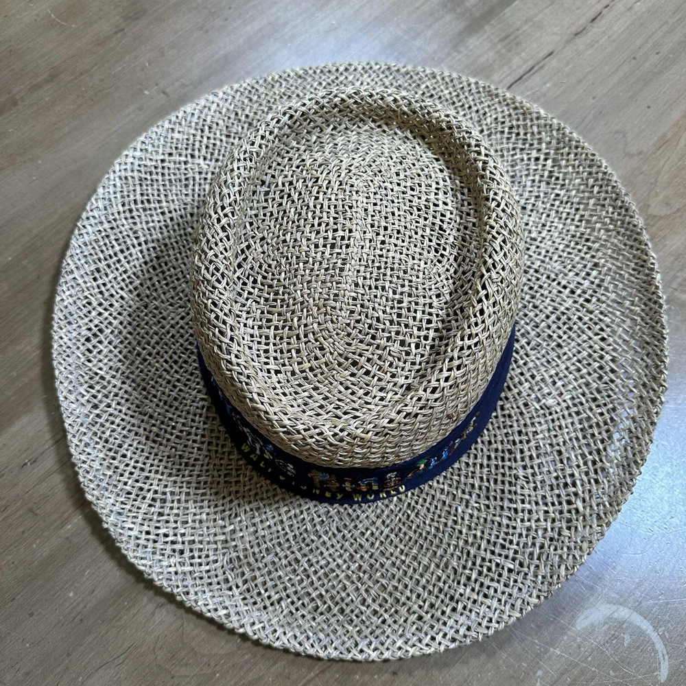 Walt Disney World Magic Kingdom Straw One Size Brim Sun Hat Embroidered Vacation Preowned in good condition