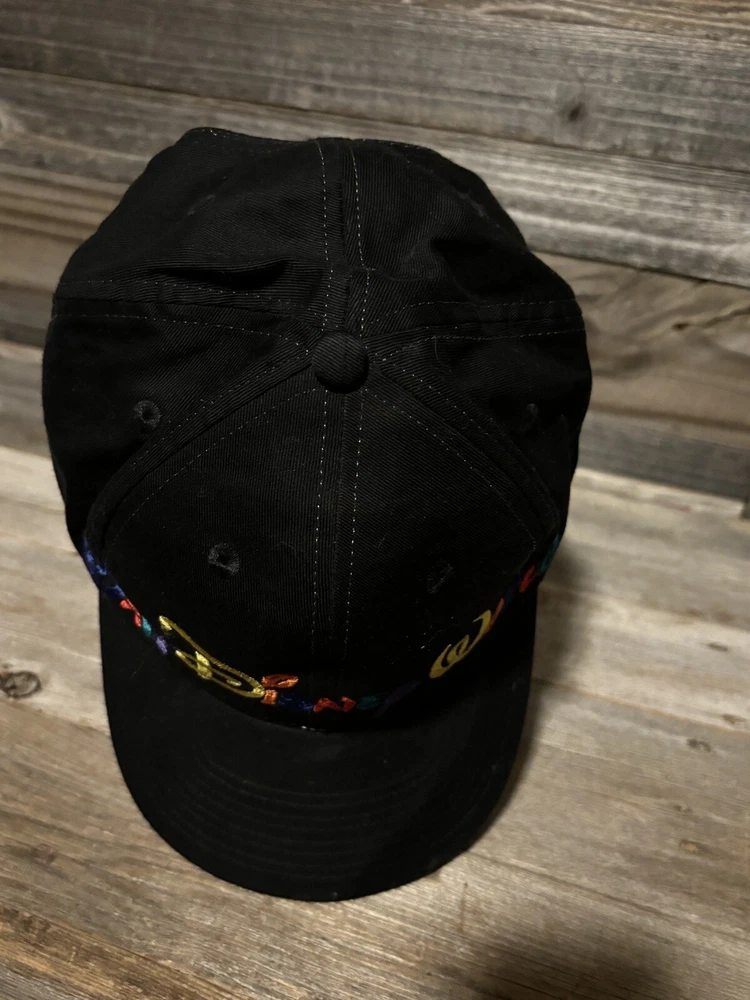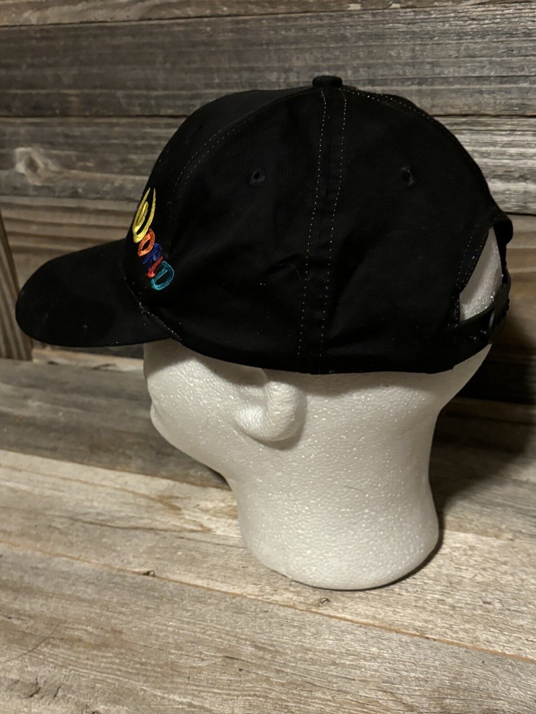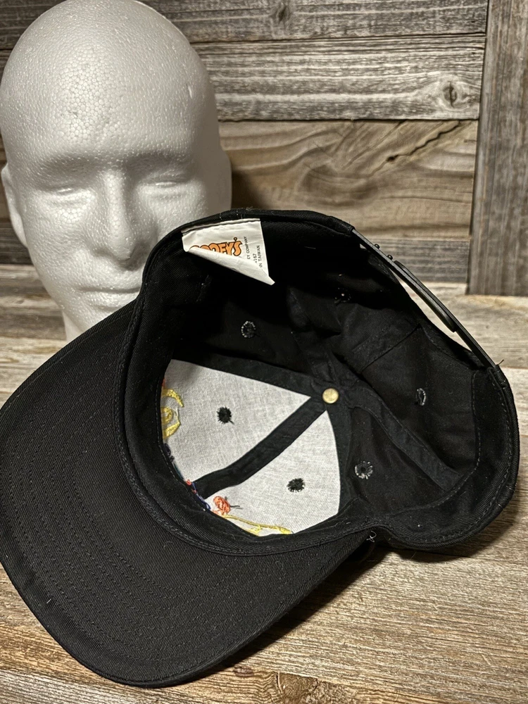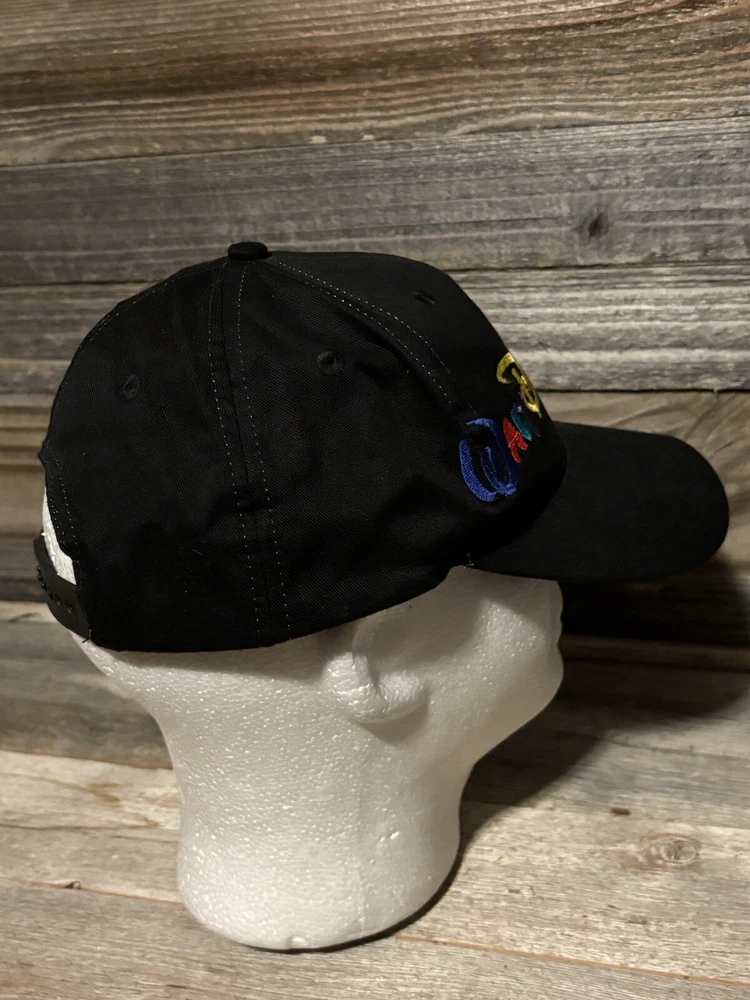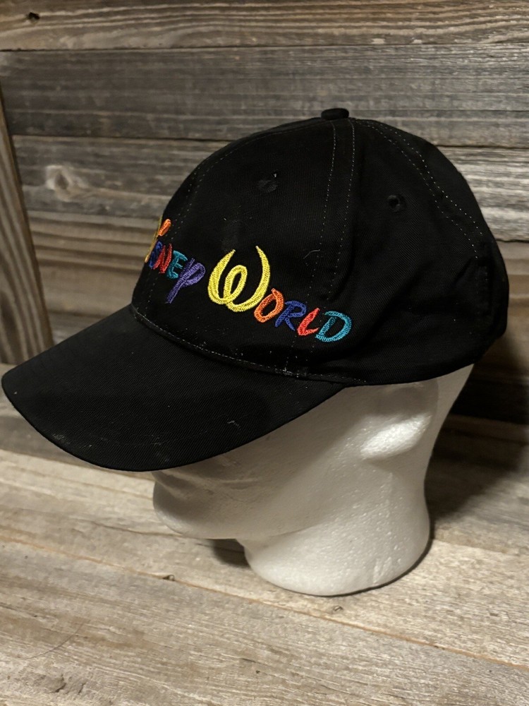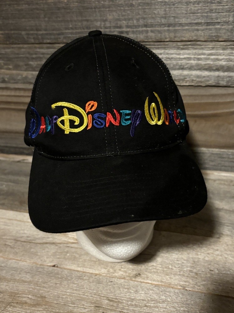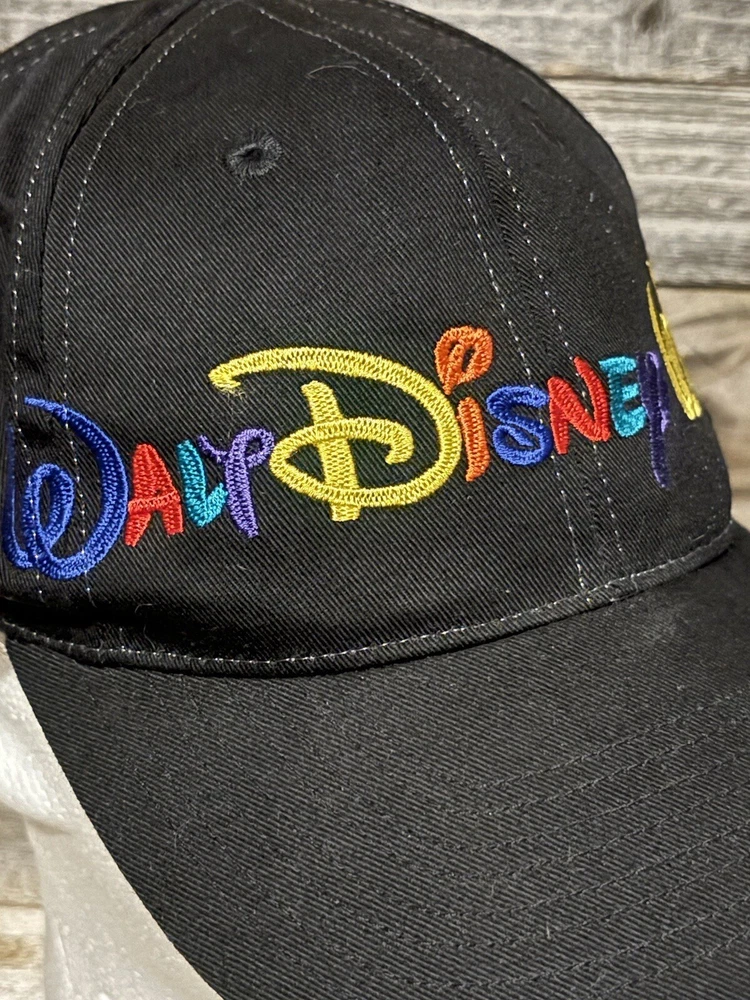 This Walt Disney World trucker hat features everyone's favorite mouse, Mickey Mouse. The adjustable snapback design makes it a versatile addition to any casual outfit. The black color and woven fabric type give it a classic and timeless look. This vintage piece is perfect for Disney fans and collectors alike.