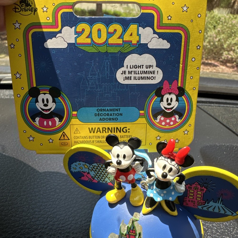 The product is a Walt Disney World Mickey & Minnie Mouse Ear Hat Ornament that lights up. We believe it is a collectible item from Disney, specifically featuring the iconic Mickey Mouse character. Made of resin and manufactured in Contemporary Disney stores, this ornament captures the magic and nostalgia of the beloved Disney franchise. Perfect for fans of Disney, this ornament is a unique and charming addition to any holiday decor or collection. New w tags Disney parks