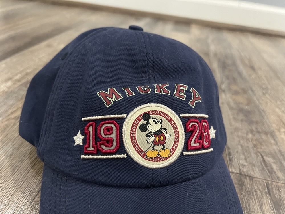 Show off your love for all things Disney with this Walt Disney World Mickey Mouse 1928 Patch Hat Cap in blue. The hat features a spell-out logo of the iconic Mickey Mouse character, making it the perfect accessory for any Disney fan. It is suitable for adults of all sizes and is made in China with high-quality materials. This collectible item is perfect for any Disneyana enthusiast and is sure to make a statement at any convention or event. The hat is branded with the Disney franchise and is an officially licensed product. Add this unique piece to your collection today and show off your love for the magical world of Disney.