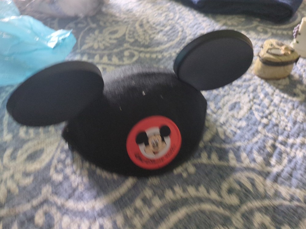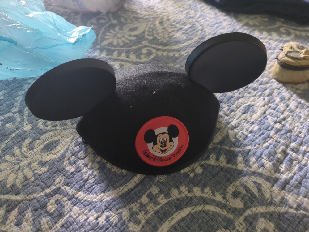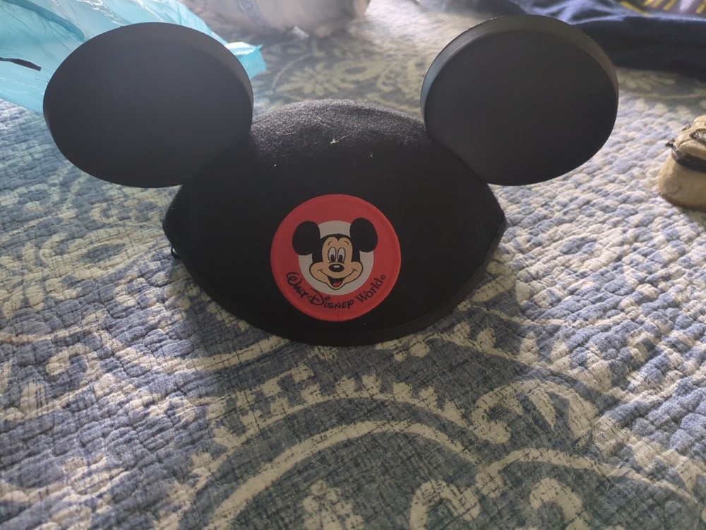 This Walt Disney World Mickey Mouse black felt hat is a must-have for any Disney fan. The hat features Mickey Mouse's iconic ears and is an original Disney Parks item. It is designed for adults and comes in one size that fits most. The hat is made of high-quality material and is perfect for any Disney convention or event. The hat is a part of the Disneyana collectibles category and is a great addition to any Disney fan's collection. 2nd hat is from the Mickey for kids Please use pictures as part of the description