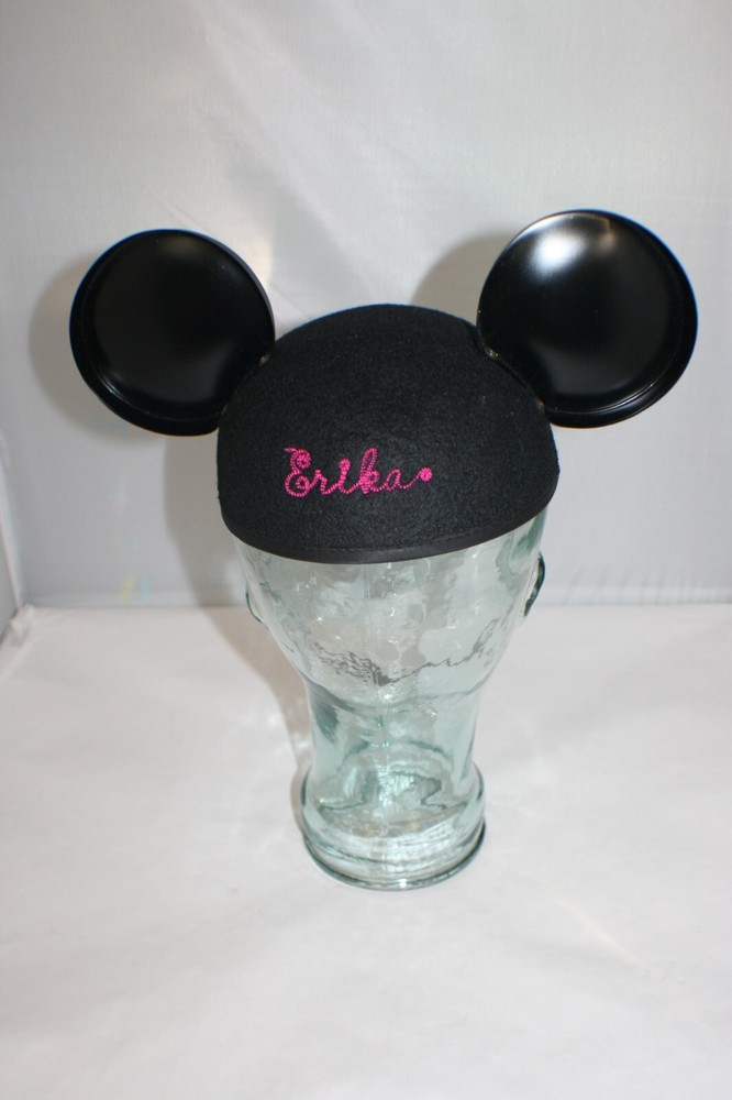 WALT DISNEY WORLD MICKEY MOUSE CLUB DISNEY PARKS FABULOUS YOUTH BLACK FELT EARS HAT "ERIKA" IS EMBROIDERED IN PINK ON BACK CHIN STRAP WORN ONLY A FEW TIMES WHILE ON VACAY GREAT CONDITION NO MARKS, STAINS, SMELLS OR TEARS ITEM IS FROM A SMOKE FREE HOME :) THANKS FOR LOOKING AT ANOTHER FAB FIND!!! LIVE LIFE FAB