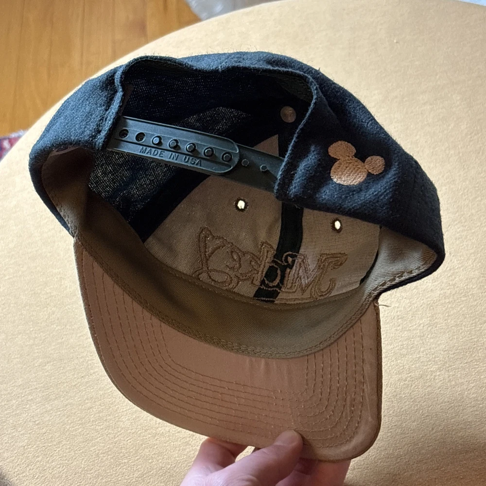 Walt Disney World Mickey Mouse Dad Hat Dark Green Tan Adjustable Vintage Made US. Condition is Pre-owned. Shipped with USPS First Class Package. Vintage Made in USA One size fits all The Walt Disney Company Super cool hat Excellent pre owned condition