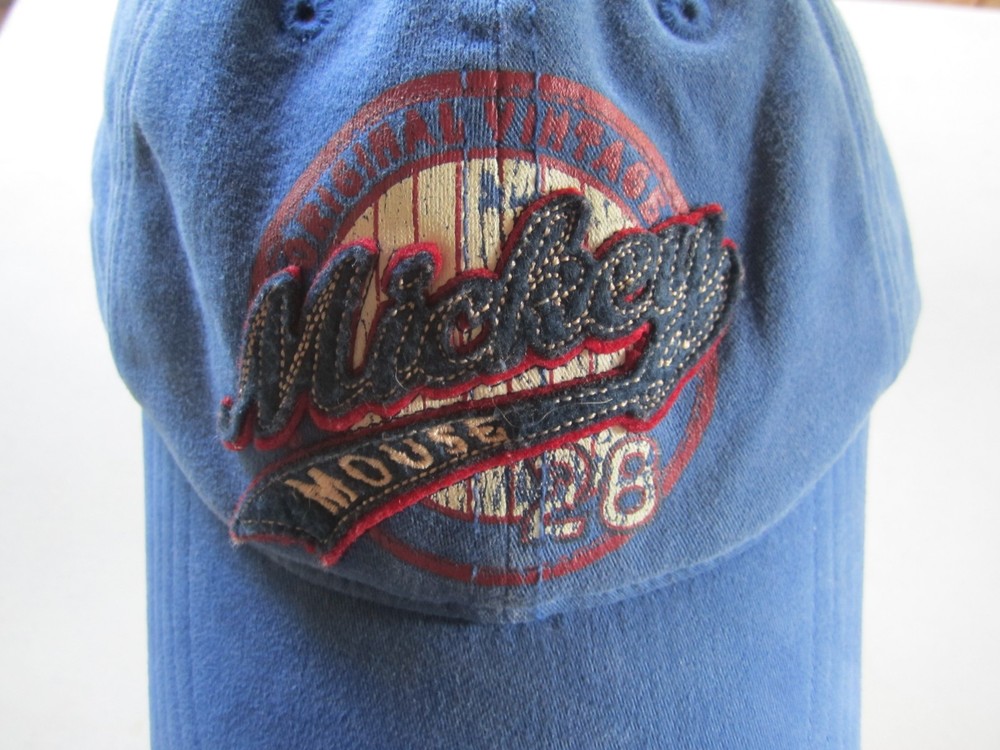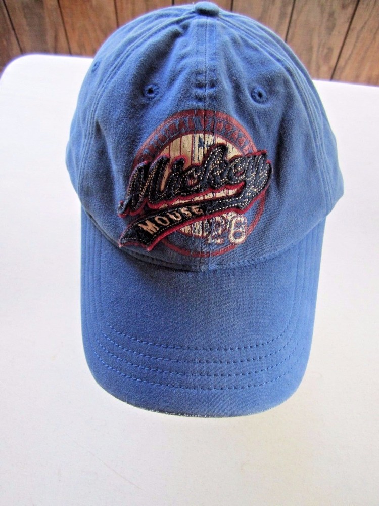 Walt Disney World Mickey Mouse Distressed Look Soft Mold Cap Blue Adult Size Adult "One Size" / fits to approximately a 7 1/2 size. Please see pictures - minor signs of wear. Ships FAST, FREE tracking