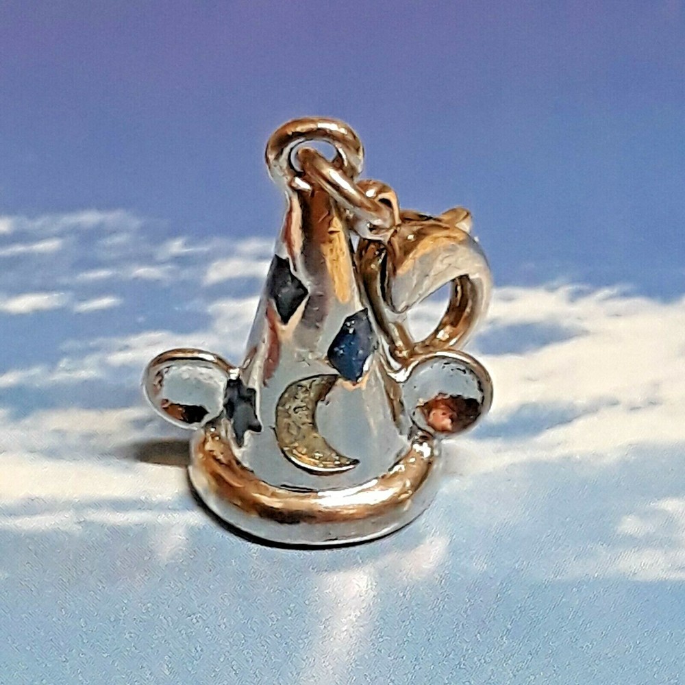 This adorable Mickey Mouse Sorcerer Hat charm is a must-have for Disney fans! The silver-tone lobster clasp makes it easy to attach to bags or keychains, and the pre-owned condition still looks fantastic. The vintage charm adds a touch of Disney magic to any accessory—perfect for collectors or anyone who loves Fantasia. The detailing is crisp, and it’s a fun, nostalgic piece. Just check the photos to see its charm for yourself!