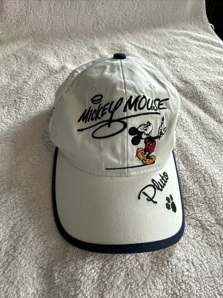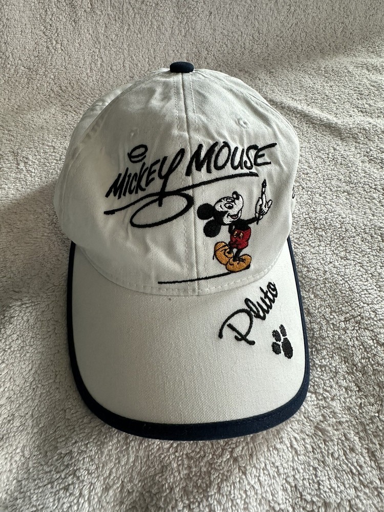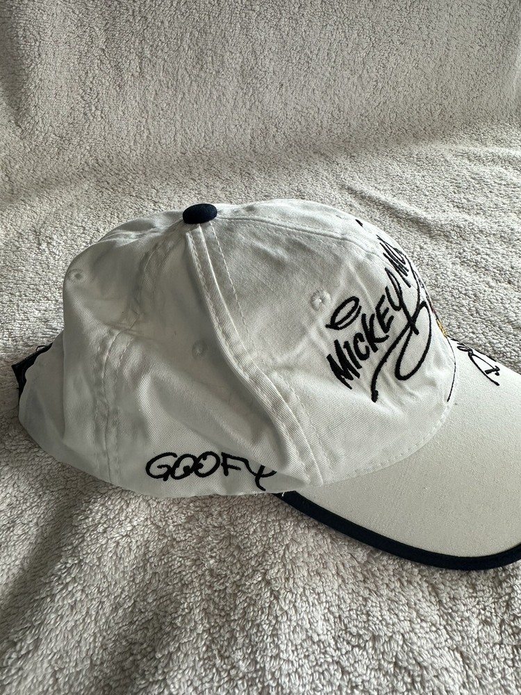 Walt Disney World Mickey Mouse Minnie Goofy Pluto Donald Signatures Light Beige Cap adjustable back. In ACCEPTABLE Pre-owned Condition. No rips or tears just minor discolorations both interior and exterior as shown. Please check Photos for more details and condition so you are aware BEFORE you buy. Thank you!
