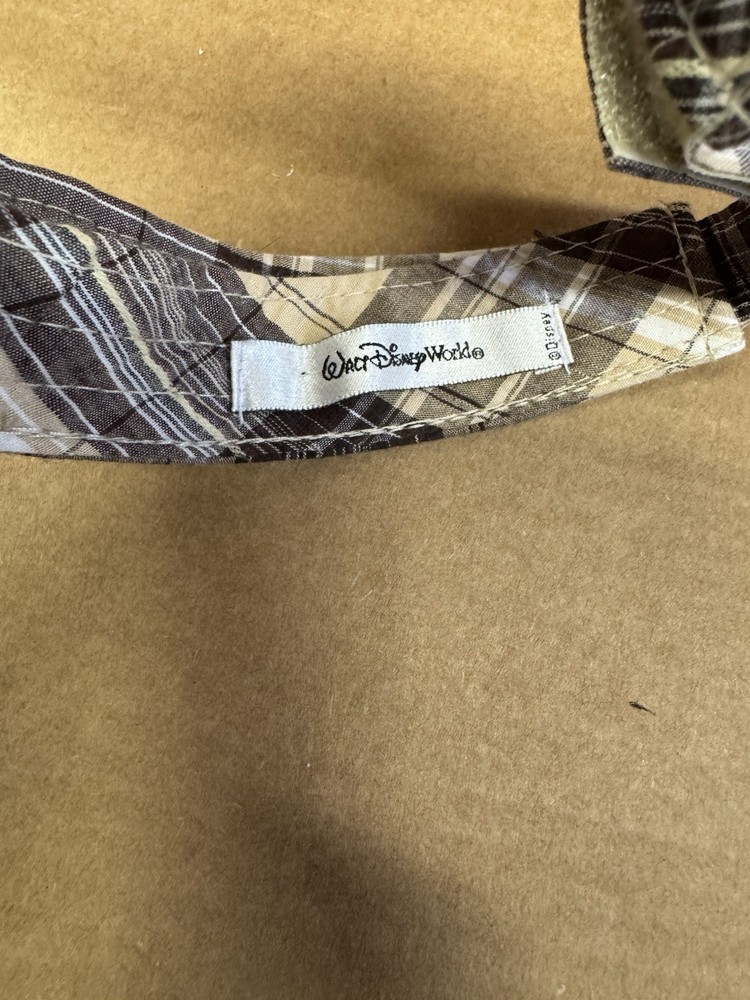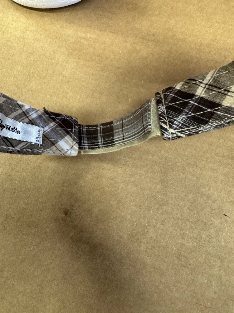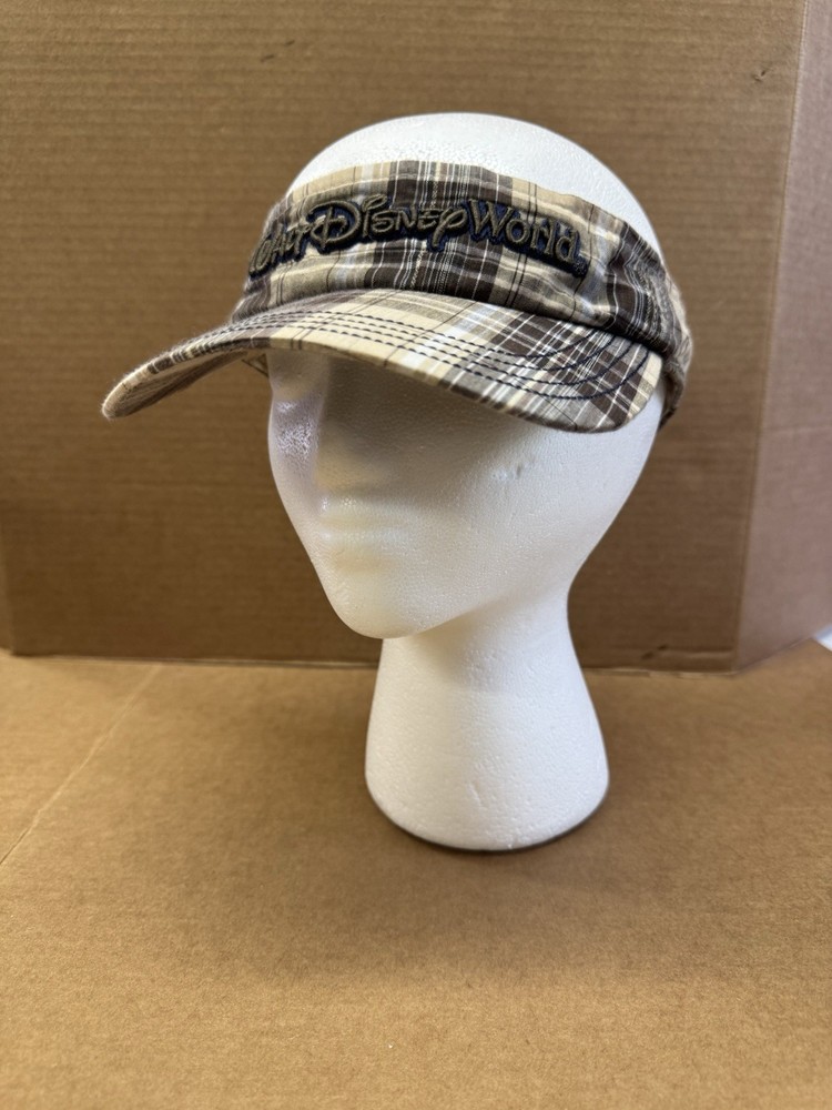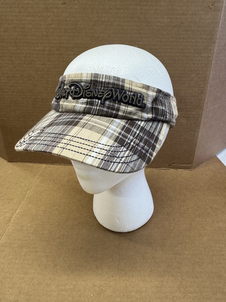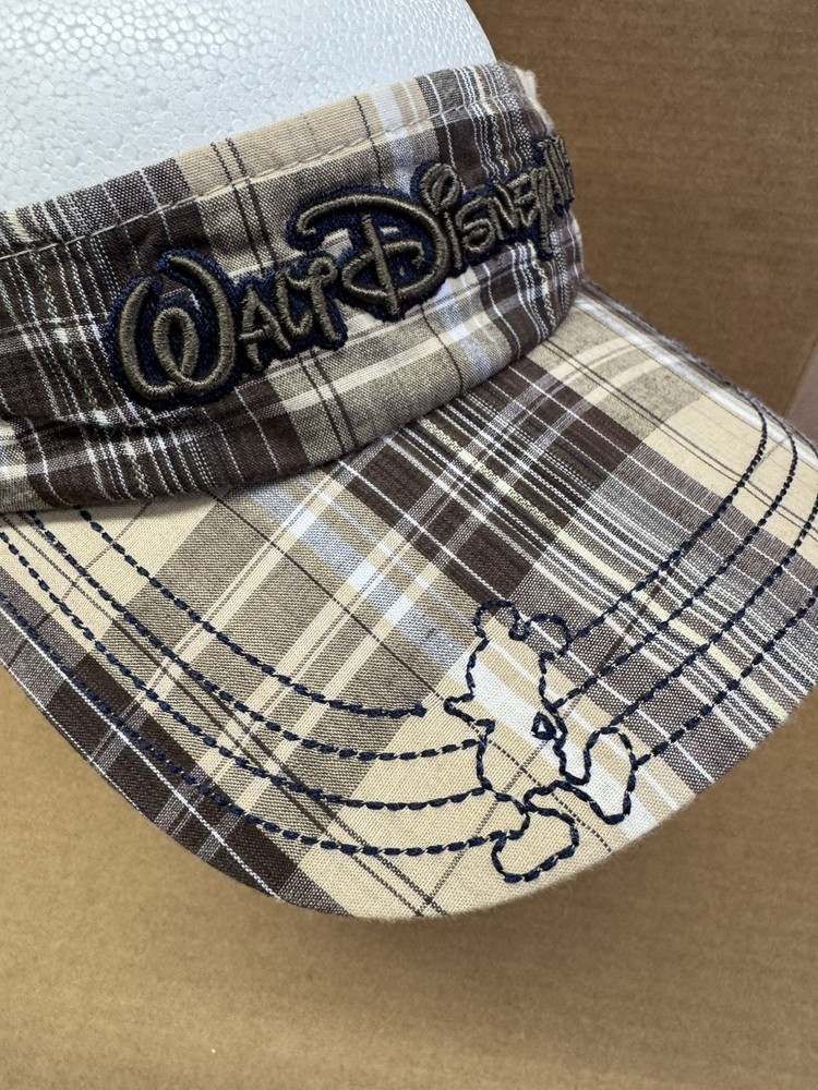 Walt Disney World Mickey Mouse Silhouette Adult Beige Plaid Hook Loop Visor Hat...