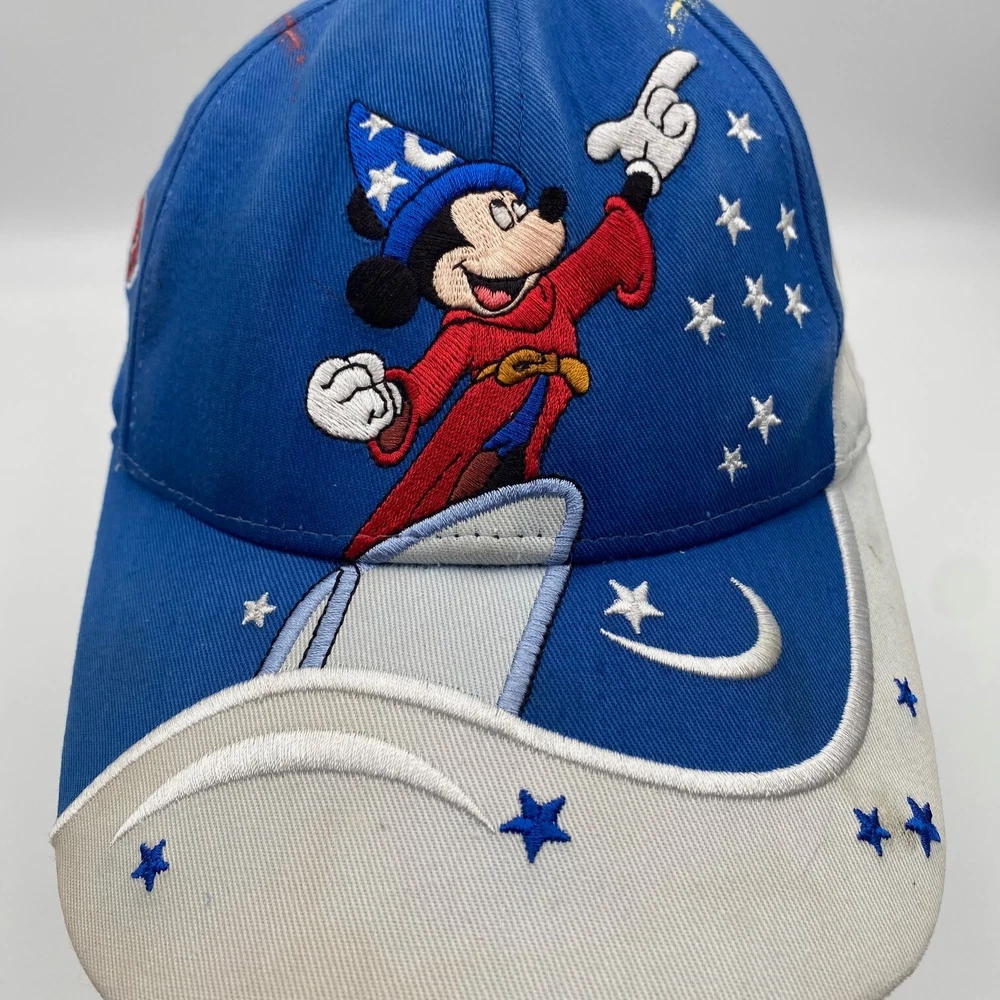 Walt Disney World Mickey Mouse Sorcerers Hat Cap Strapback Youth Adjustable Blue Condition: Pre-owned. Normal wear from use. Has some spots/stains and fading. See photos to verify condition as they ar...