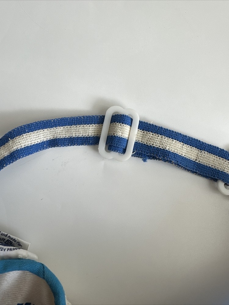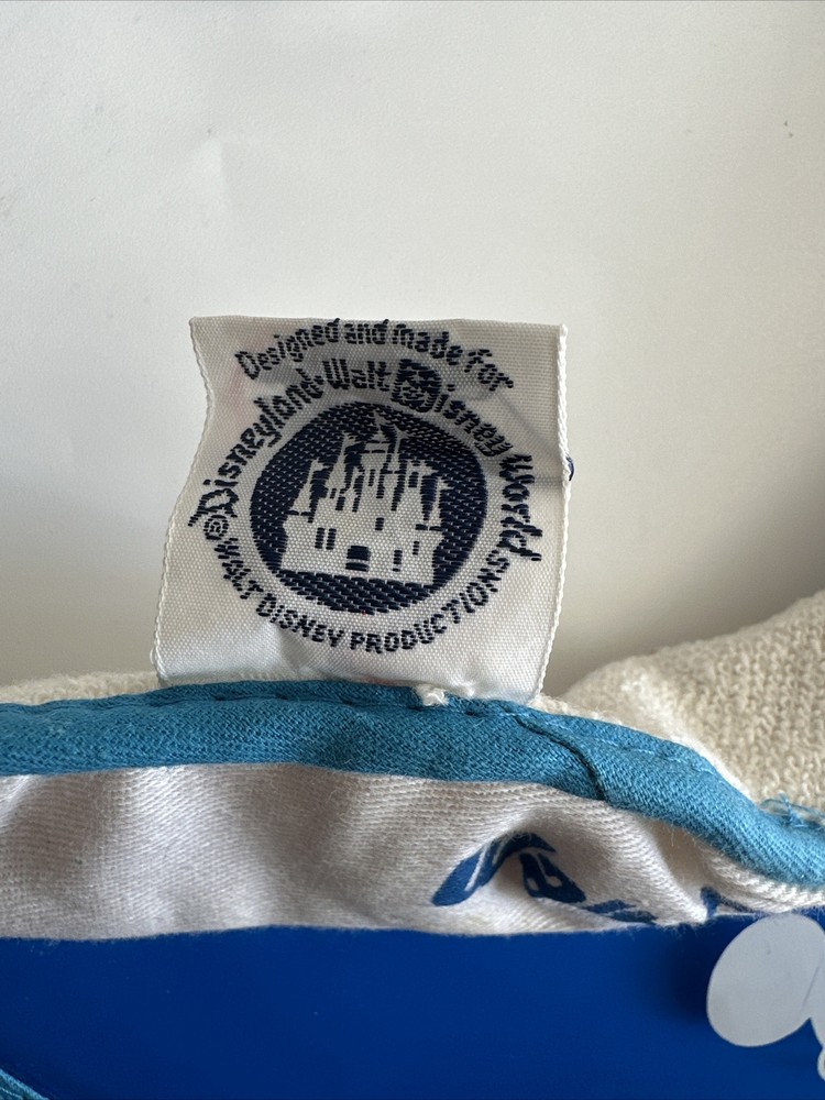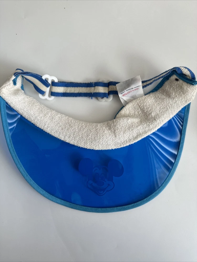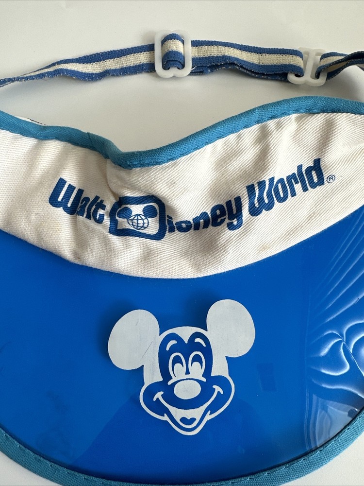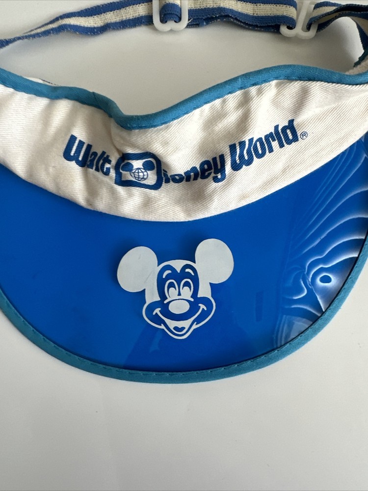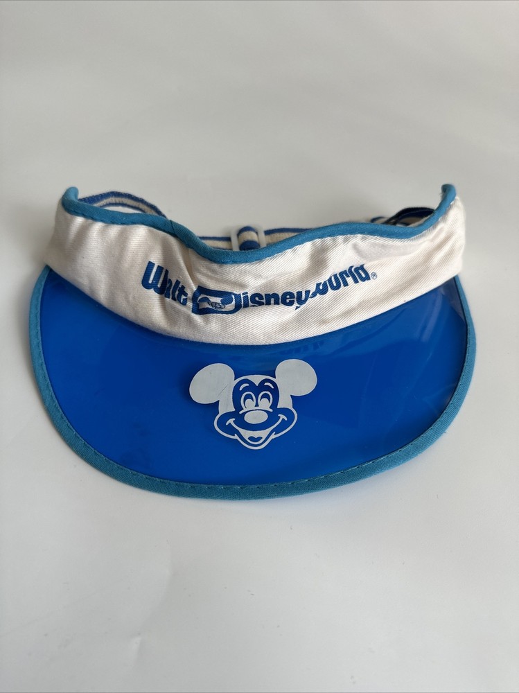 Item is in good shape but the back band is stiffer and fragile. Embrace the magic of Walt Disney World with this vintage 1980's Mickey Mouse sun visor hat. The blue color and one-size-fits-all design make it a perfect addition to any Disney or Mickey Mouse fan's collection. Show off your love for the iconic character, and the happiest place on earth, with this unisex and contemporary piece of apparel. Crafted in the United States, this sun visor hat is an authentic piece of Disneyana franchised merchandise. The hat features the beloved character Mickey Mouse, making it a valuable item for any collector. This hat is suitable for adults and is a must-have for any Disney fan looking to add a touch of magic to their wardrobe.