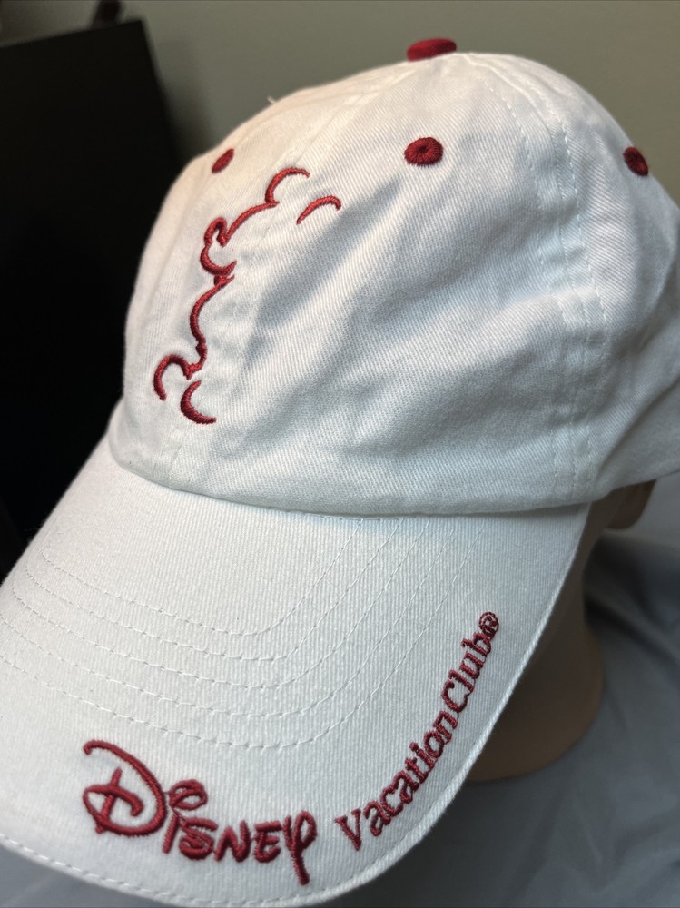 Show off your love for Disney with this Walt Disney World Mickey Mouse Vacation Club MEMBER White Hat Strap Back. The white baseball cap features a cute Mickey Mouse character embroidery and an adjustable strap, making it a perfect fit for anyone. The hat is perfect for casual occasions and is a must-have item for any Disney enthusiast. This unisex cap is suitable for both men and women and can be paired with any outfit. The solid pattern and white color give it a classic look that never goes out of style. Get this adjustable hat today and bring a touch of Disney magic to your wardrobe.