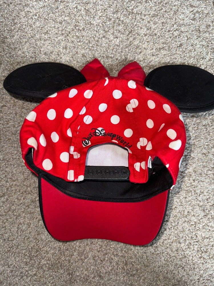 Brighten up your little one's day with the charming Walt Disney World Minnie Mouse Ears Youth Baseball Cap. The classic red and black polka dot design is a delightful nod to everyone's favorite lovable mouse. Crafted from 100% cotton, this hat is both comfortable and durable, ensuring it can keep up with all the playground adventures. Designed with kids in mind, the cap comes in a youth size that fits perfectly for little heads. The iconic Disney Parks brand guarantees authentic quality and the magic of Disney is woven into every detail, making it an essential accessory for any young Disney fan's collection. Whether it's for a day at the theme parks or just a casual outing, this Disney ear hat is sure to put a smile on your child's face.