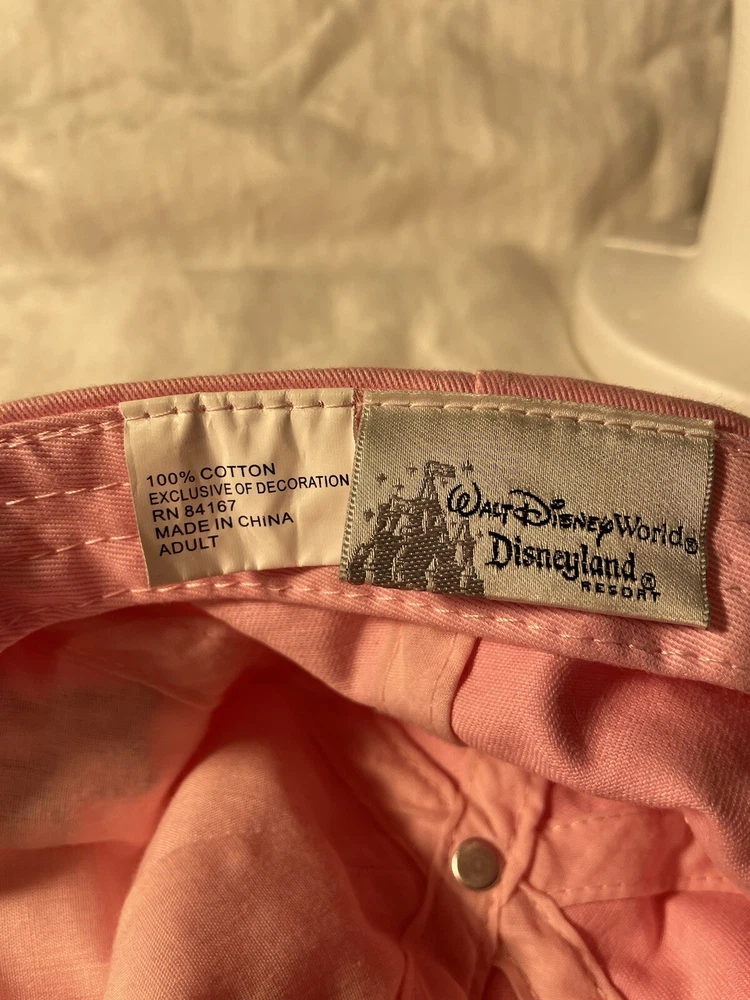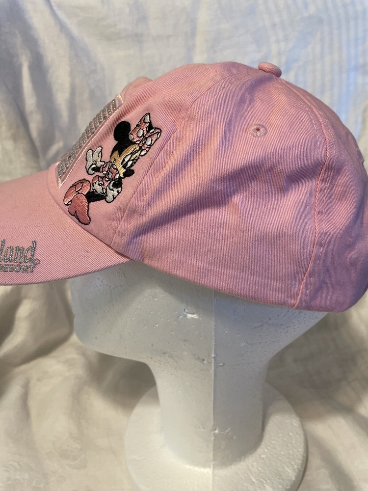 This lovely pink cap adorned with Minnie Mouse is perfect for any Disney fan. The adjustable adult size makes it a versatile option for anyone, while the bling adds a touch of glamour. The cap is in excellent shape and ready for a new owner to love and cherish. It is a wonderful addition to any Disneyana collection. Don't miss out on the chance to own this piece of magic!