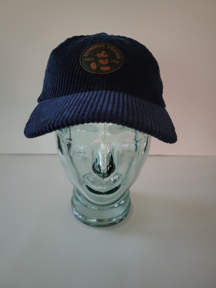 Gorgeous corduroy Disney Parks Mickey hat. Features a brown leather like patch with the mouse and "Authentic Original Since 1928"...