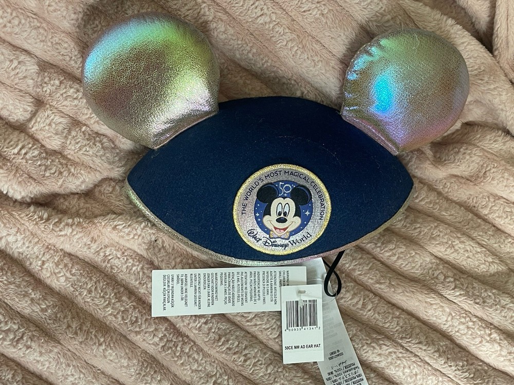 Celebrate the 50th anniversary of Walt Disney World with this collectible Mickey Mouse ear hat. The hat features the iconic Mickey Mouse design and is perfect for any Disney fan. The hat is available in one size and is suitable for adults. This ear hat is a great souvenir to commemorate the 50th anniversary of Disney World. The hat is made of high-quality materials and features the beloved character Mickey Mouse. The hat is perfect for anyone who loves Disney and wants to show off their love for the theme park.