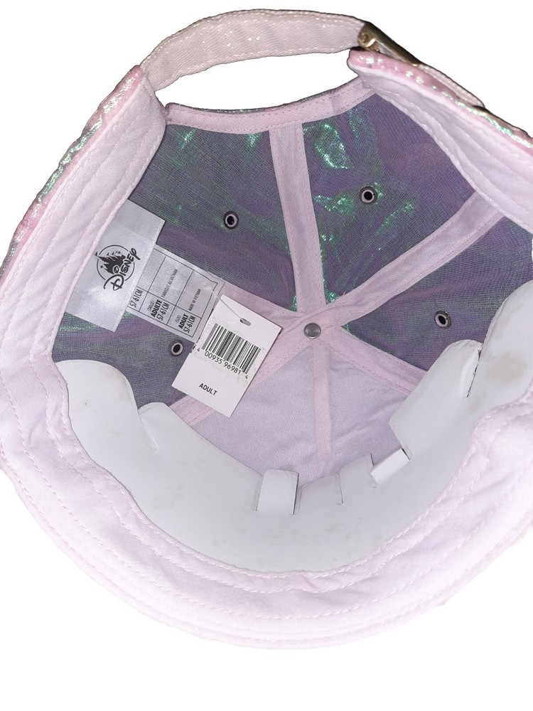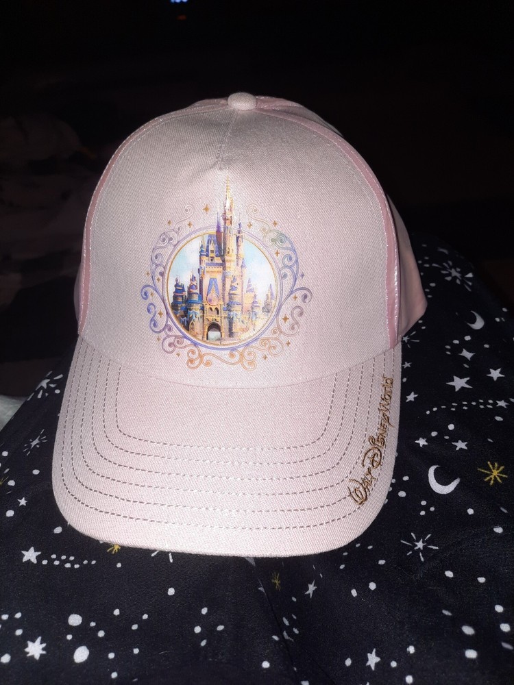 This 50th Anniversary Disney cap is absolutely stunning! The iridescent pink fabric shimmers beautifully, and the intricate Cinderella Castle design makes it a standout piece. It’s lightweight, comfortable, and adds a touch of magic to any outfit. A must-have for any Disney fan celebrating the parks’ milestone—definitely worth adding to your collection!
