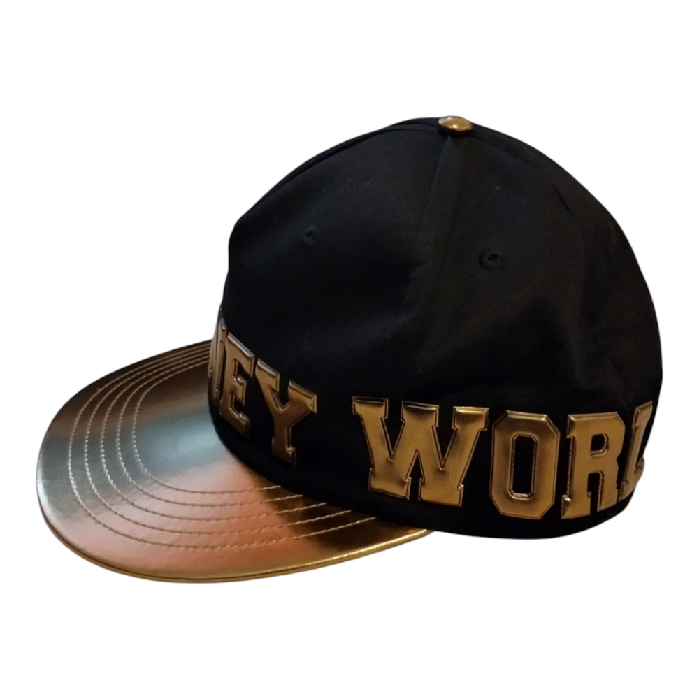 The Walt Disney World Parks Black & Gold Adjustable Snapback Cap Hat in adult size is a stylish and versatile accessory suitable for both men and women. Featuring the iconic Disney brand, this hat is perfect for any Disney fan looking to show off their love for the franchise. The classic black color scheme with gold accents adds a touch of sophistication to any outfit, making it a must-have collectible for contemporary Disney enthusiasts.