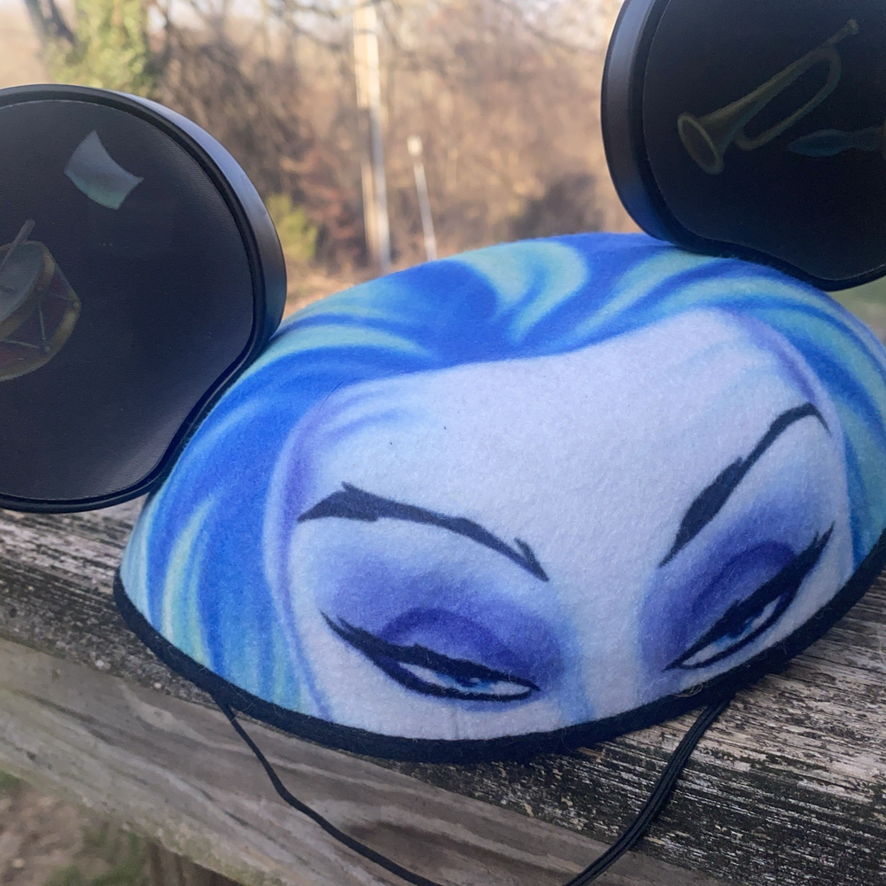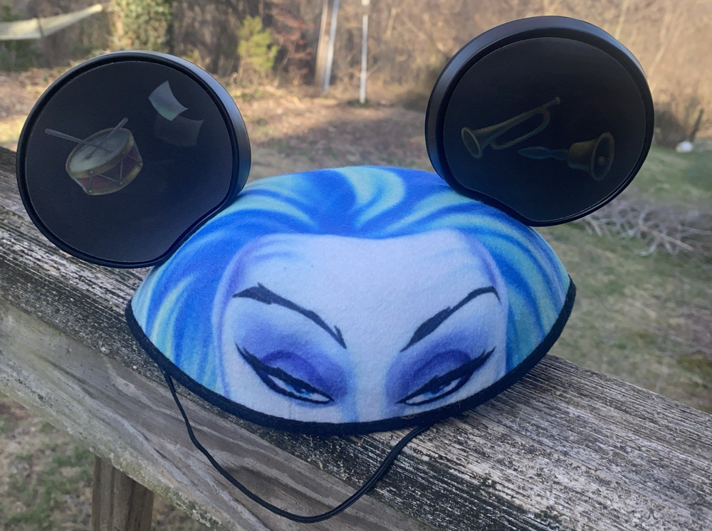 This product is a Walt Disney World Parks Haunted Mansion Madame Leota Mickey Ear Hat in blue. It is a collectible item that features the iconic Disney character, Mickey Mouse, in a themed design inspired by the Haunted Mansion ride at Disney World. Made of polyester and manufactured in China, this unique ornament is a must-have for Disney enthusiasts looking to add a touch of magic to their holiday decor.