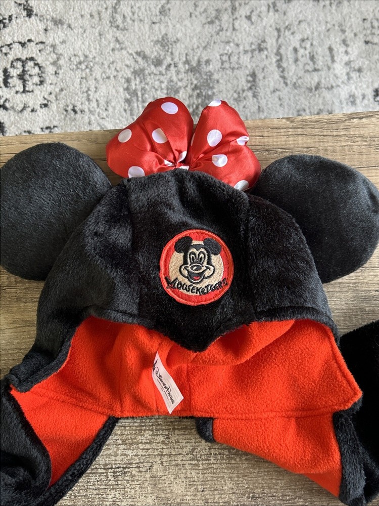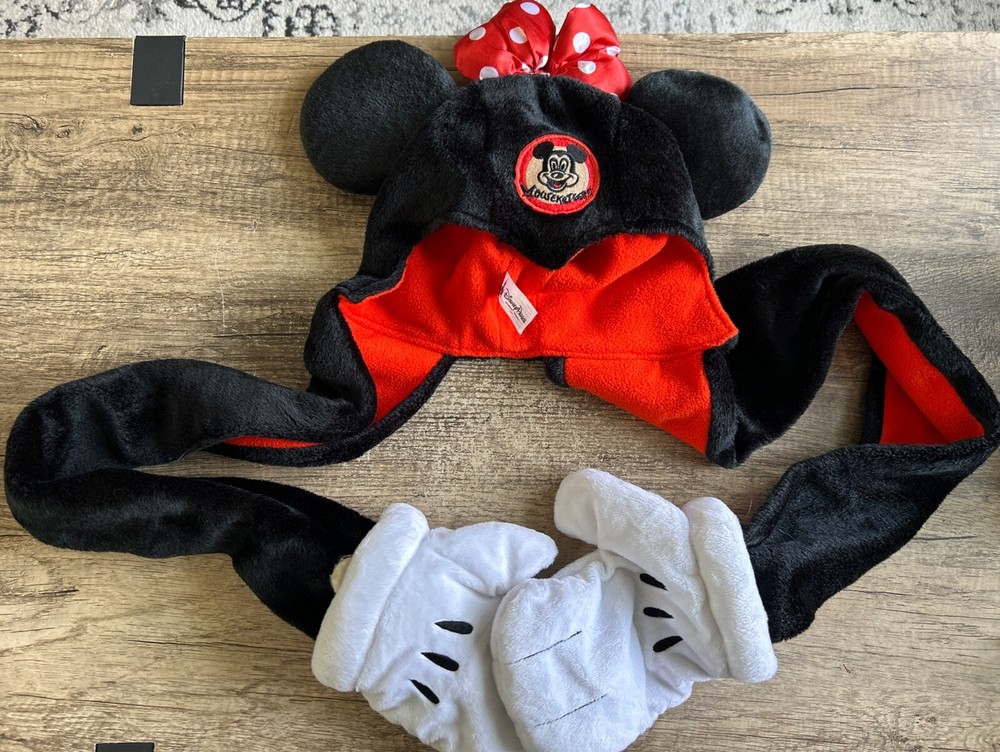 The product is a Walt Disney World Parks Mouseketeer Minnie Mouse hat and gloves set designed for adults. Made by Disney, this set features the iconic Minnie Mouse character and is part of the Disney franchise. This collectible item is perfect for fans of Disney and can be worn as a themed souvenir from the Walt Disney World Parks. It adds a fun and stylish touch to any Disney enthusiast's collection.