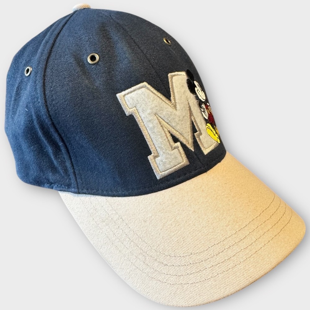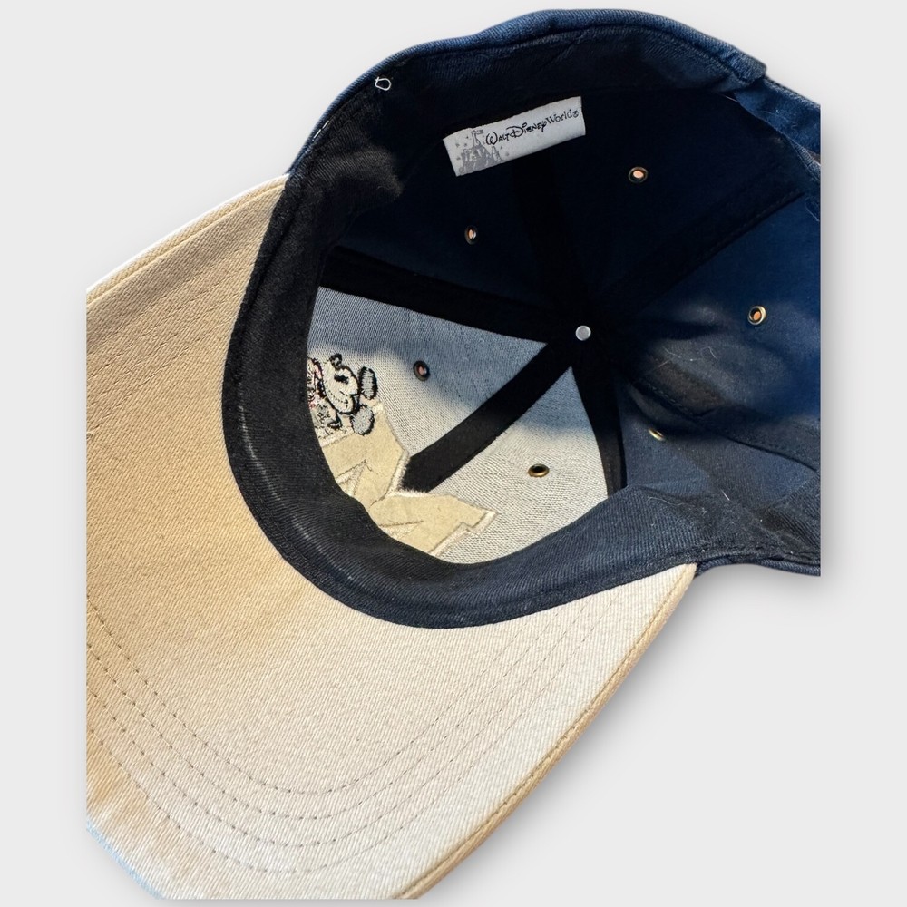This vintage Walt Disney World Parks Mickey Mouse adult hat cap is a nostalgic and collectible accessory perfect for any Disney fan. Featuring the iconic character Mickey Mouse in navy blue and white, this hat is suitable for both men and women, this officially licensed Disney product is a timeless piece that embodies the magic and charm of Walt Disney World Parks. Perfect for showcasing your love for Disney and adding a touch of whimsy to any outfit.
