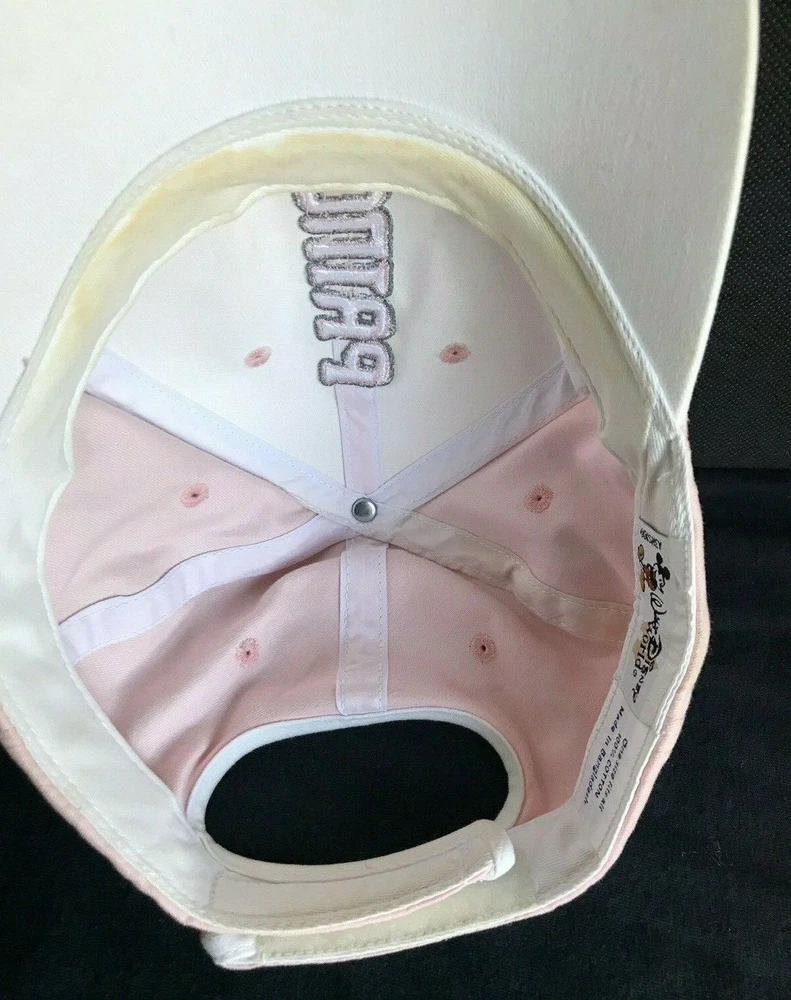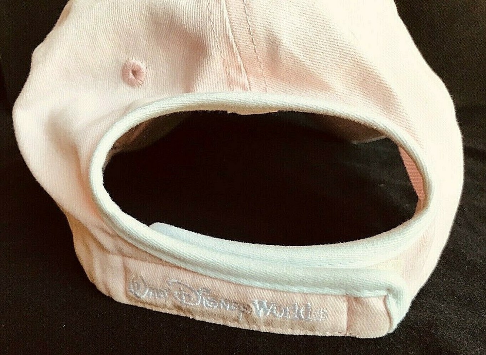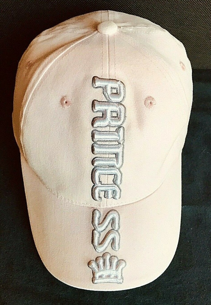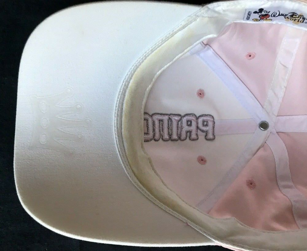 This Princess baseball-style hat was purchased at Walt Disney World in 2009 Attractive Pink hat top with White underside. Embroidered "Princess" and crown It is gently used and has great color and the top is stain free. The inside band does show light use. It is 100% Cotton. It has a Velcro adjustment and is "one size fits most". It is from a non-smoking and pet free home. Please see all pictures for design and condition. Winner to add $5.99 for S/H within the Continental US.