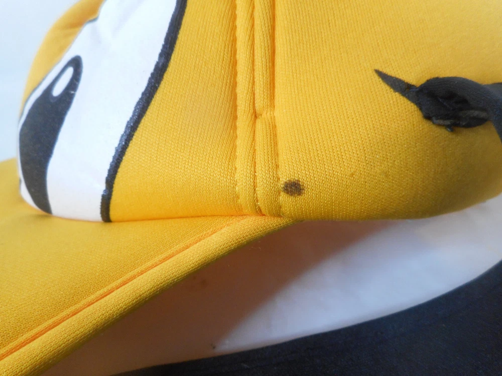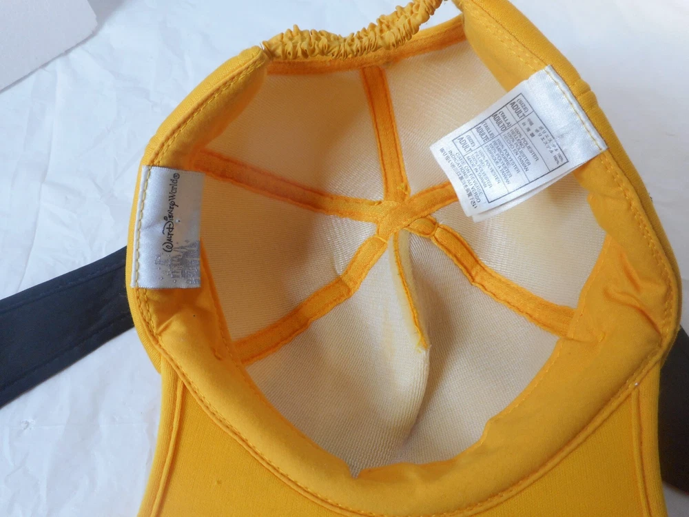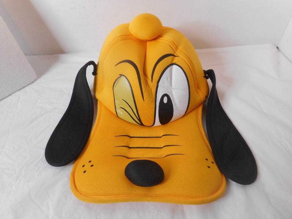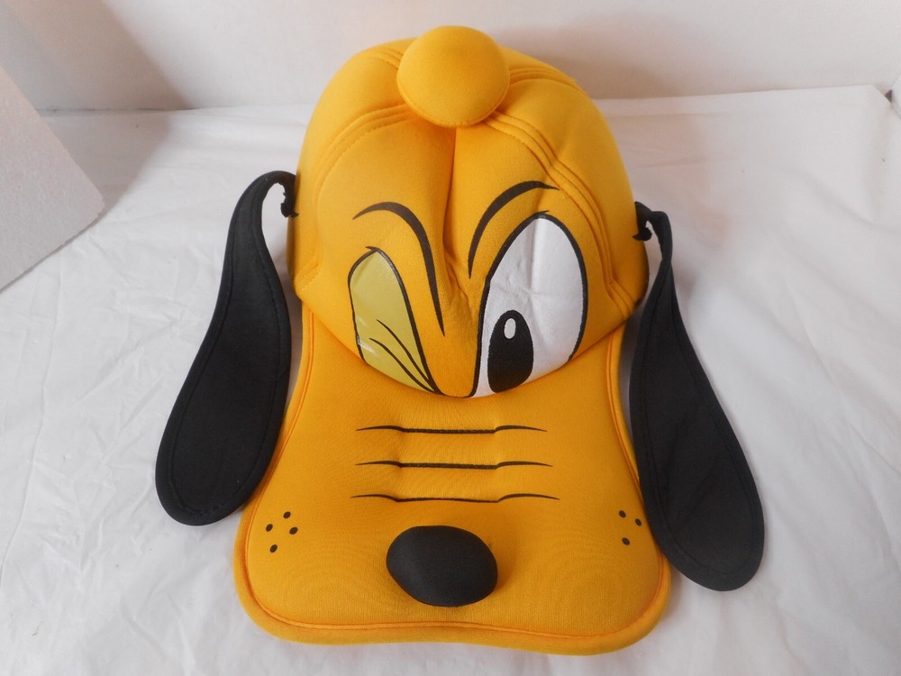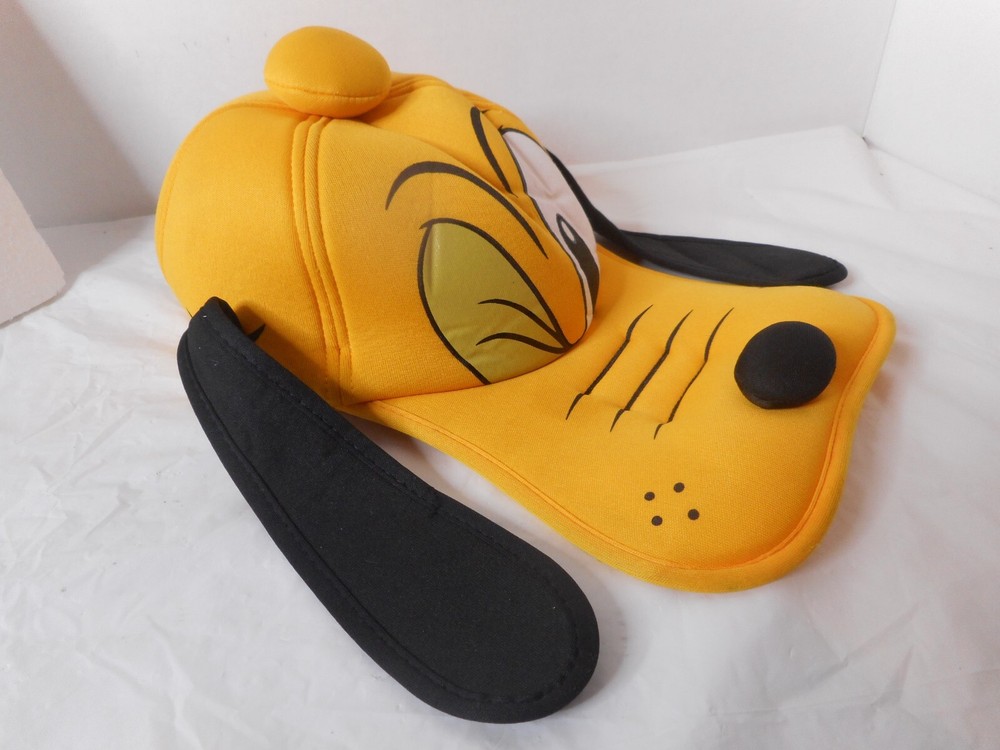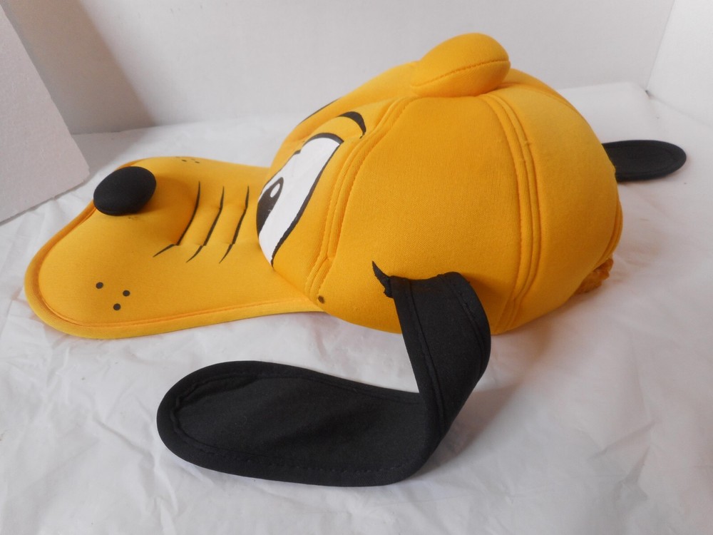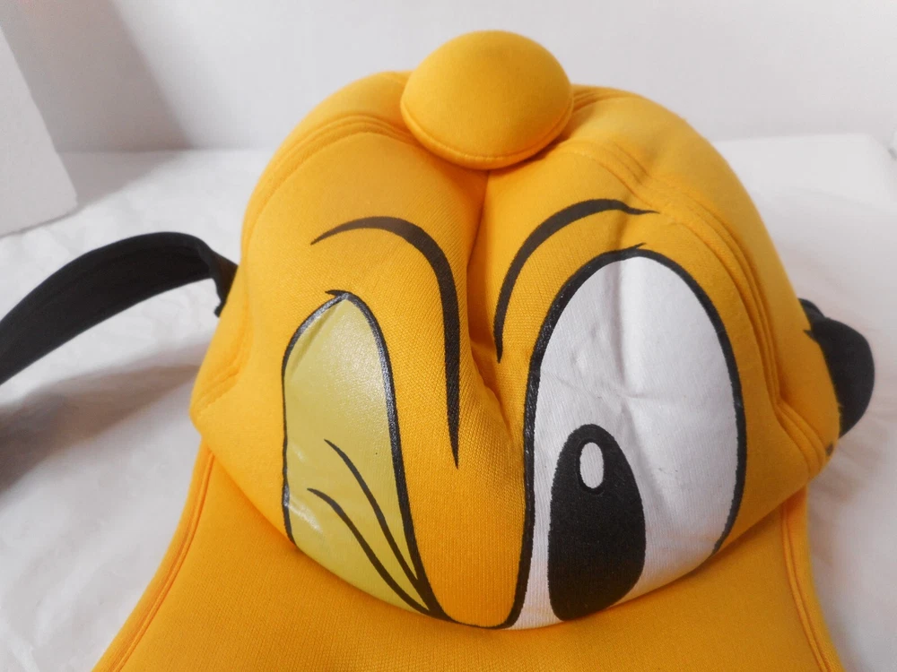 Show off your love for Disney with this Walt Disney World Pluto Adult Souvenier Cap. The yellow, black, white, and gold colored cap features Pluto, the lovable companion of Mickey Mouse, and is perfect for any Disney fan. Made in Taiwan, this unisex cap is suitable for adults and has a bill to keep the sun out of your face. This collectible item is part of the Disneyana franchise and is perfect for those who appreciate contemporary designs. The cap has some issues, but they do not affect the overall look of the cap. Get this unique item today and add it to your collection. The stretchy elastic band in the back adjusts for the perfect head fit. Measures 12 1/2 inches from the opening in the back of the cap to the front of the long bill Weighs 3.4 ounces ... without the box and bubble wrap materials